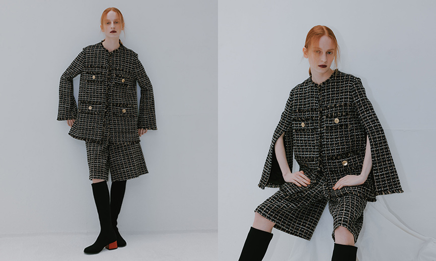 クラシカルなツィードと、モダンなデザインが魅力のシックなハーフパンツスタイル。上品な生地感、存在感のあるシルエットとは相反した、ナチュラルなストレッチ性と軽い着心地。いつものスタイルにさっと羽織るだけで特別感を演出して、背中を押してくれる。