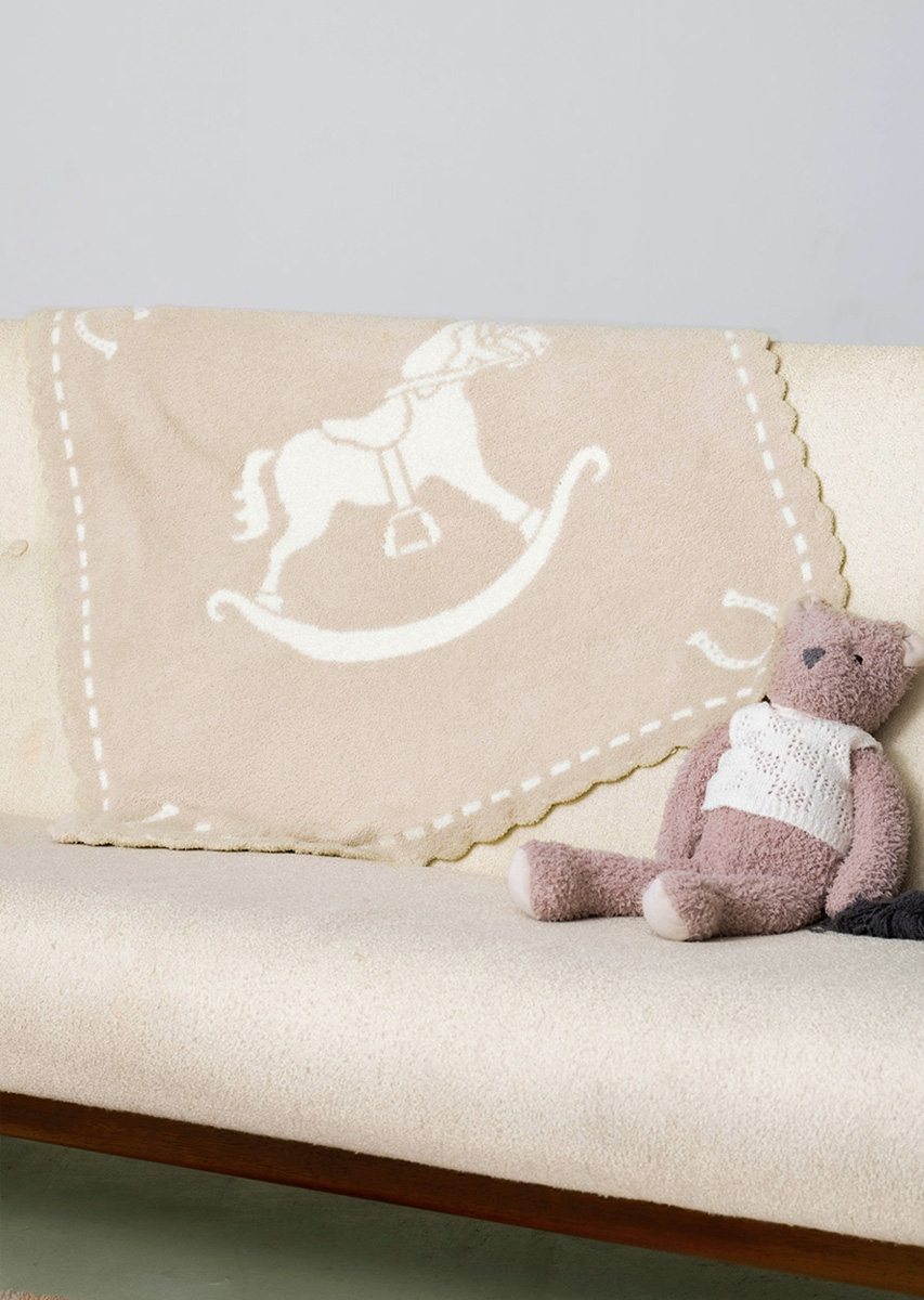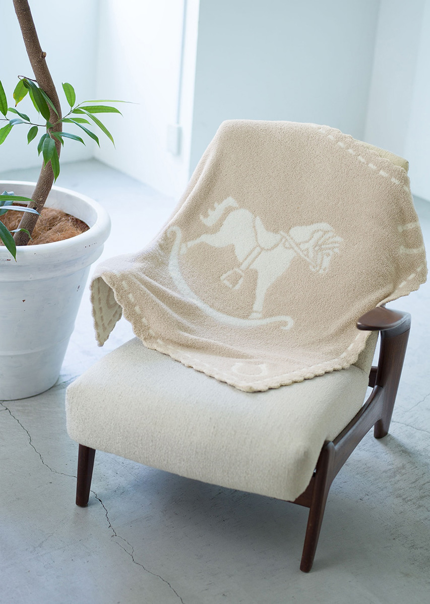 「馬」は古来より、力強さ・成長・幸運の象徴。今年生まれのベビーに贈るなら、干支を絡めてキュートな木馬柄のブランケットはいかが? やわらかな肌触りと上品なデザインで、新しい一年に心地よさを添えてくれるはず。