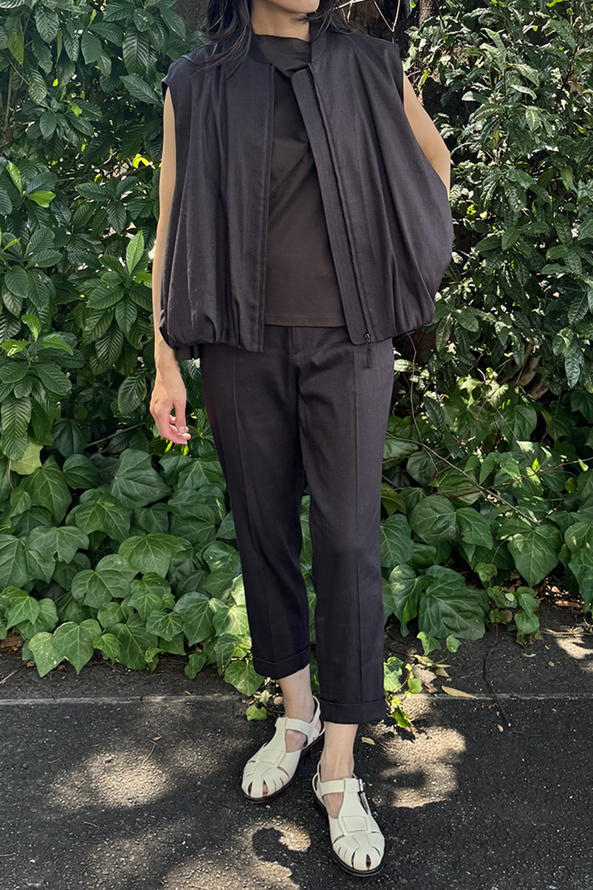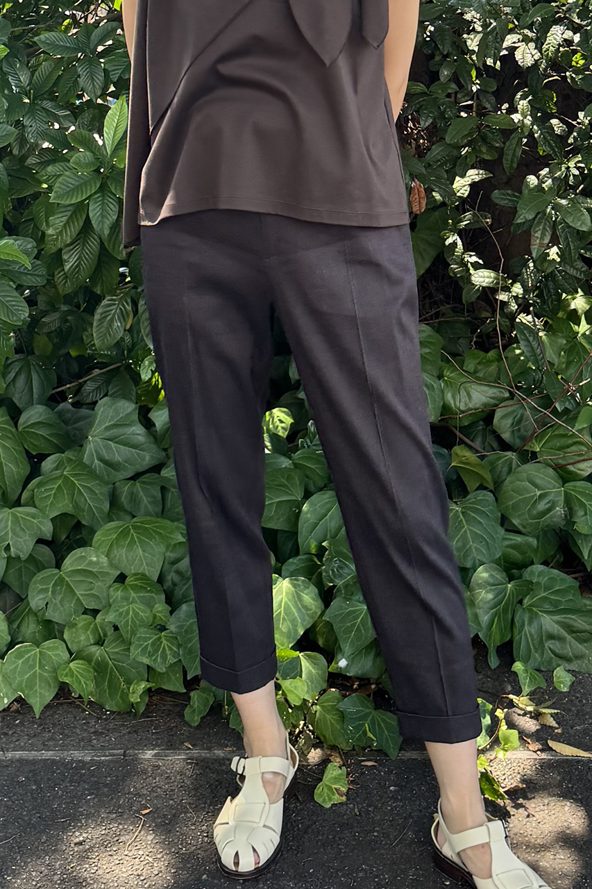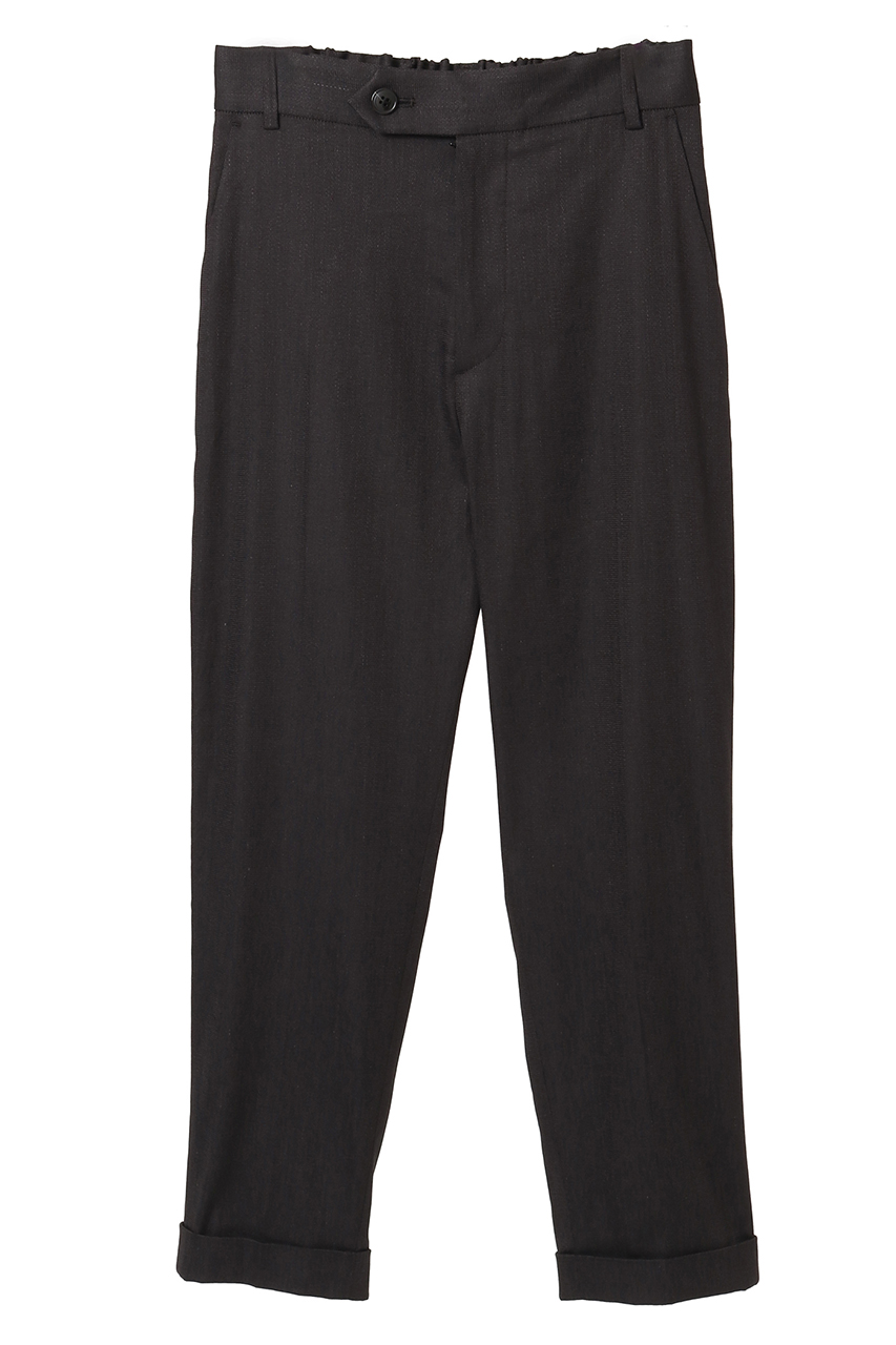 デイリーワークシーンにおすすめのセットアップ。レーヨン混のややストレッチの効いた素材が、カジュアルに取り入れられます。