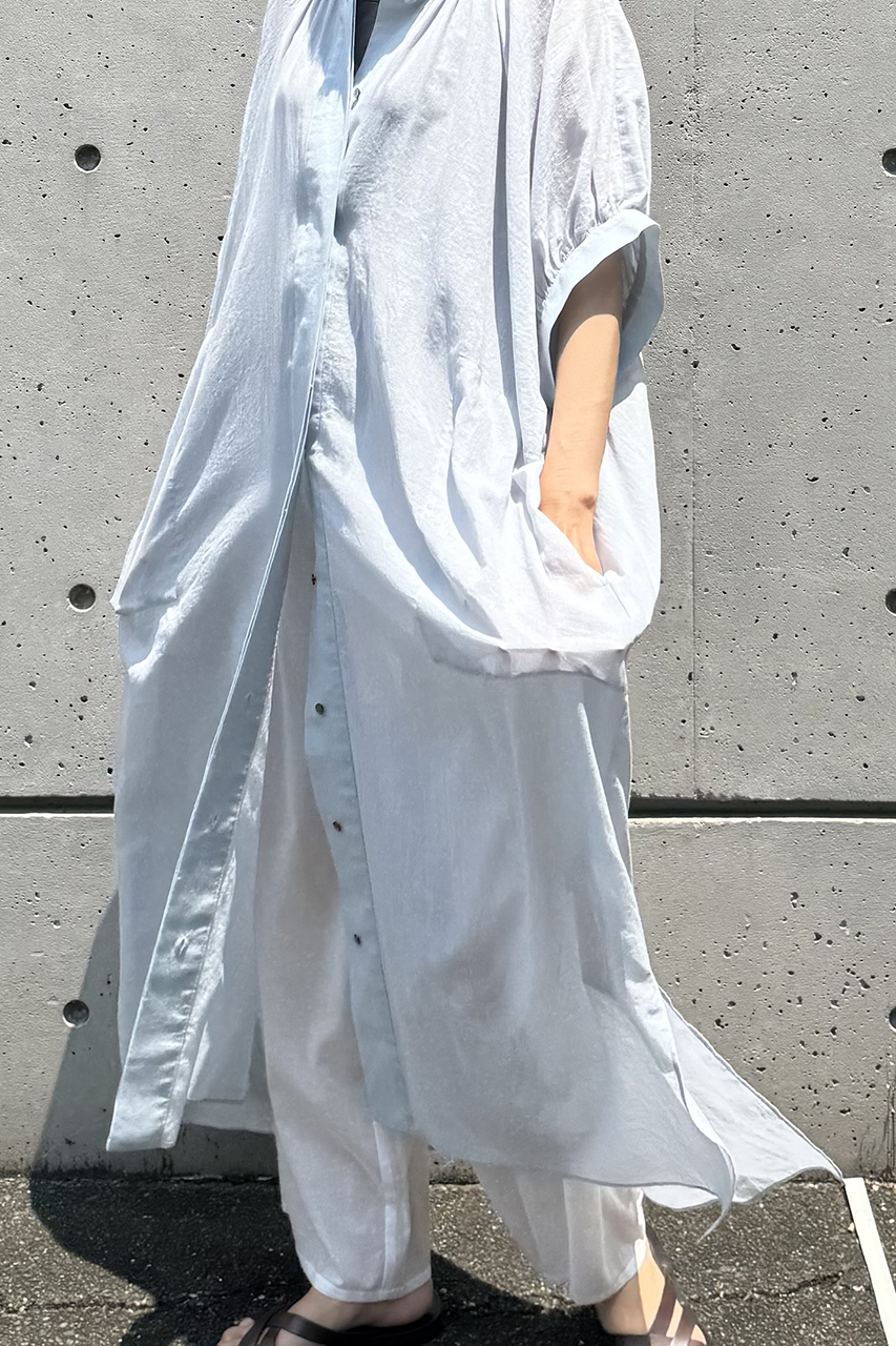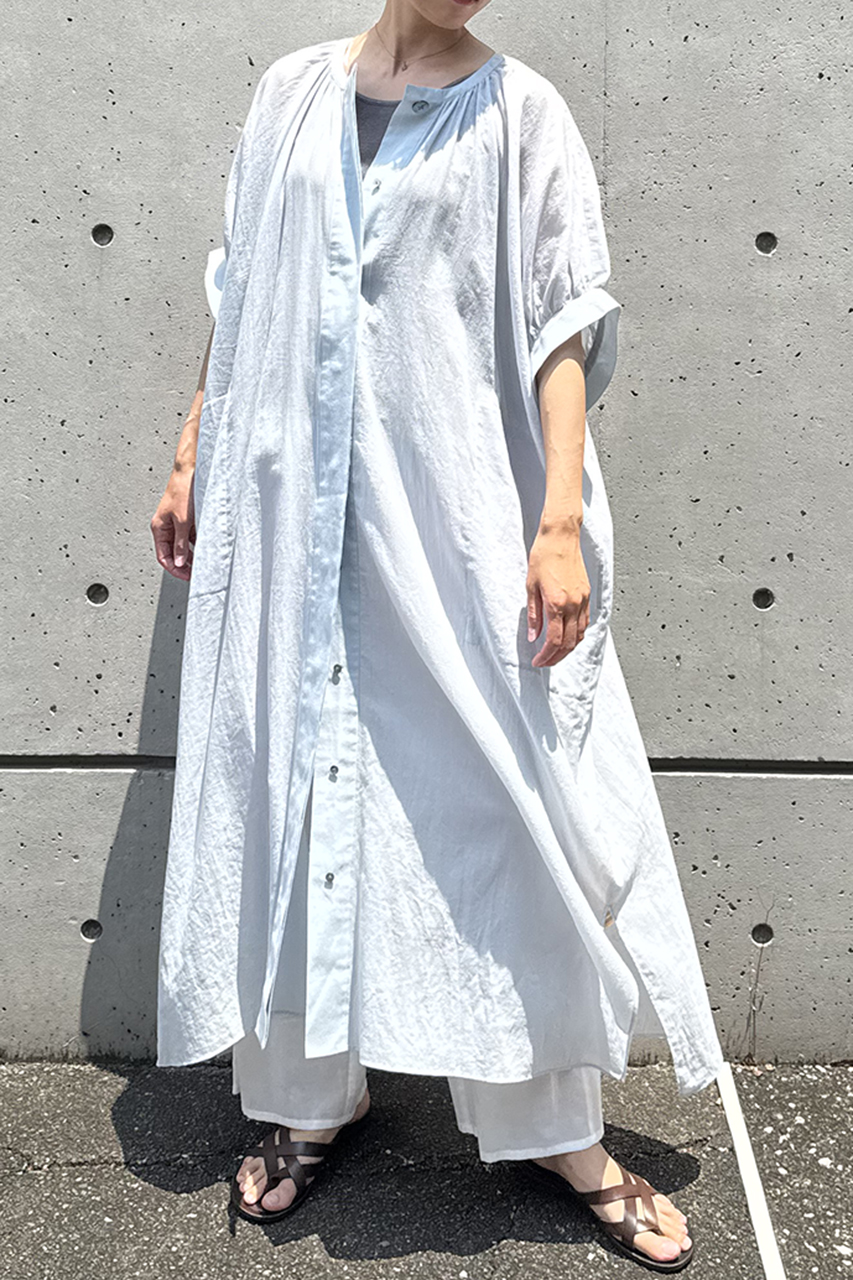 シャツワンピースにインナーボトムをセットしたセットアップ風。インナーパンツは、他のワンピースやチュニックにも合わせられるので何役にも活躍します。