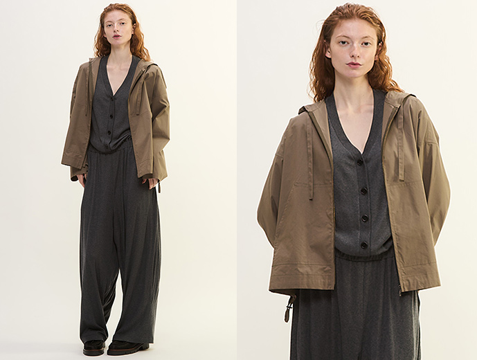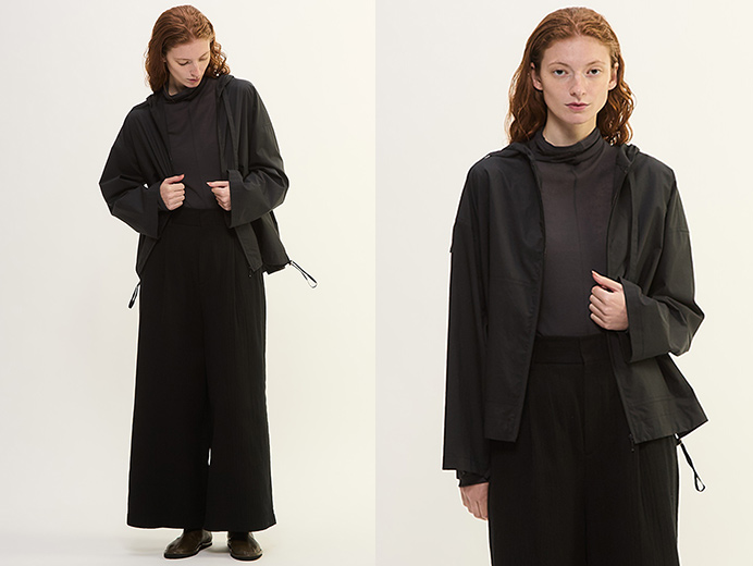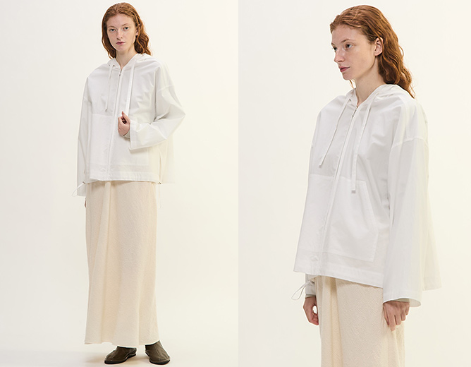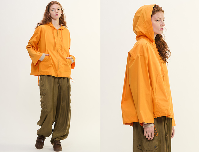 プレインピープルはシンプルなスタイルを提案します。日常に着られる服は、着心地やフォルムにこだわり、美しいシルエットと遊び心のあるカラーのパーカー。