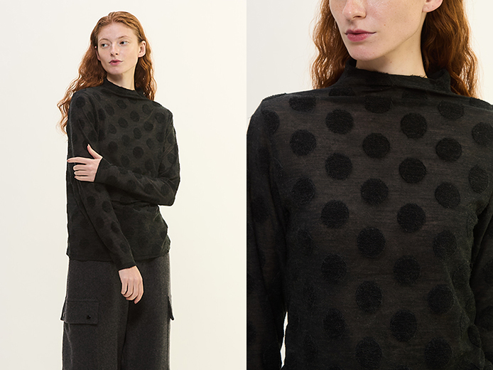 こちらは、シアー素材ロンTのワンピースタイプです。ロングコートを羽織ったときにもバランスよく着れるように「プレインピープル」の中ではやや短めの丈感です。ワンピースにはアンダードレスがセットになります。