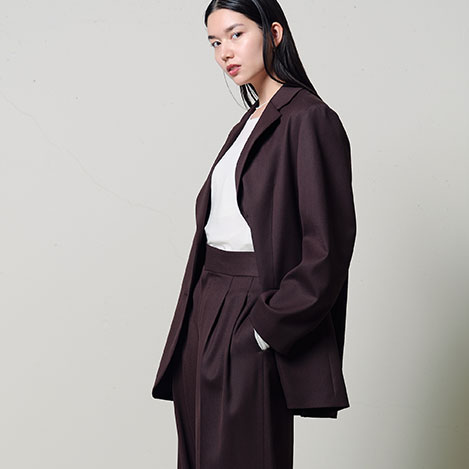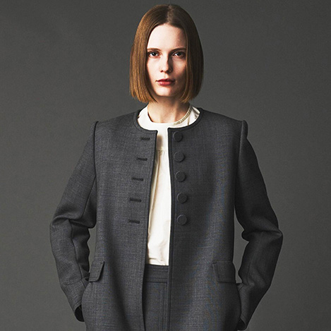 総柄のワンピースでも、落ち着いた色味、やや短い袖やブーツに合わせやすいように短めに設定した裾がクラシックな印象です。コンパクトなデザインのため、比較的タイトなオーバーアイテムとの合わせもしやすいアイテムです。
