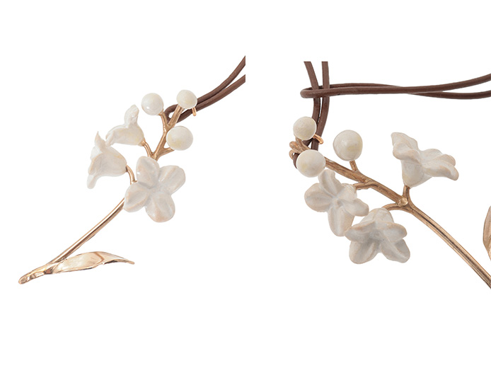 シーズンのお花や果物をモチーフにした、アート作品のようなネックレス。今シーズンは、お家や靴など身近な物をアクセサリーに昇華した新作が登場しました。