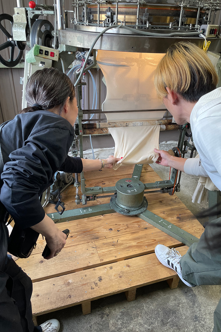 古い機械がゆっくりと丁寧に生地を編む、オーセンティックな世界を覗かせていただきました。