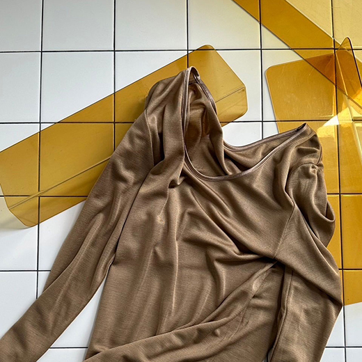 シルクの中でも高級な細番手のなめらかな糸で編み上げたシルク100%の生地。