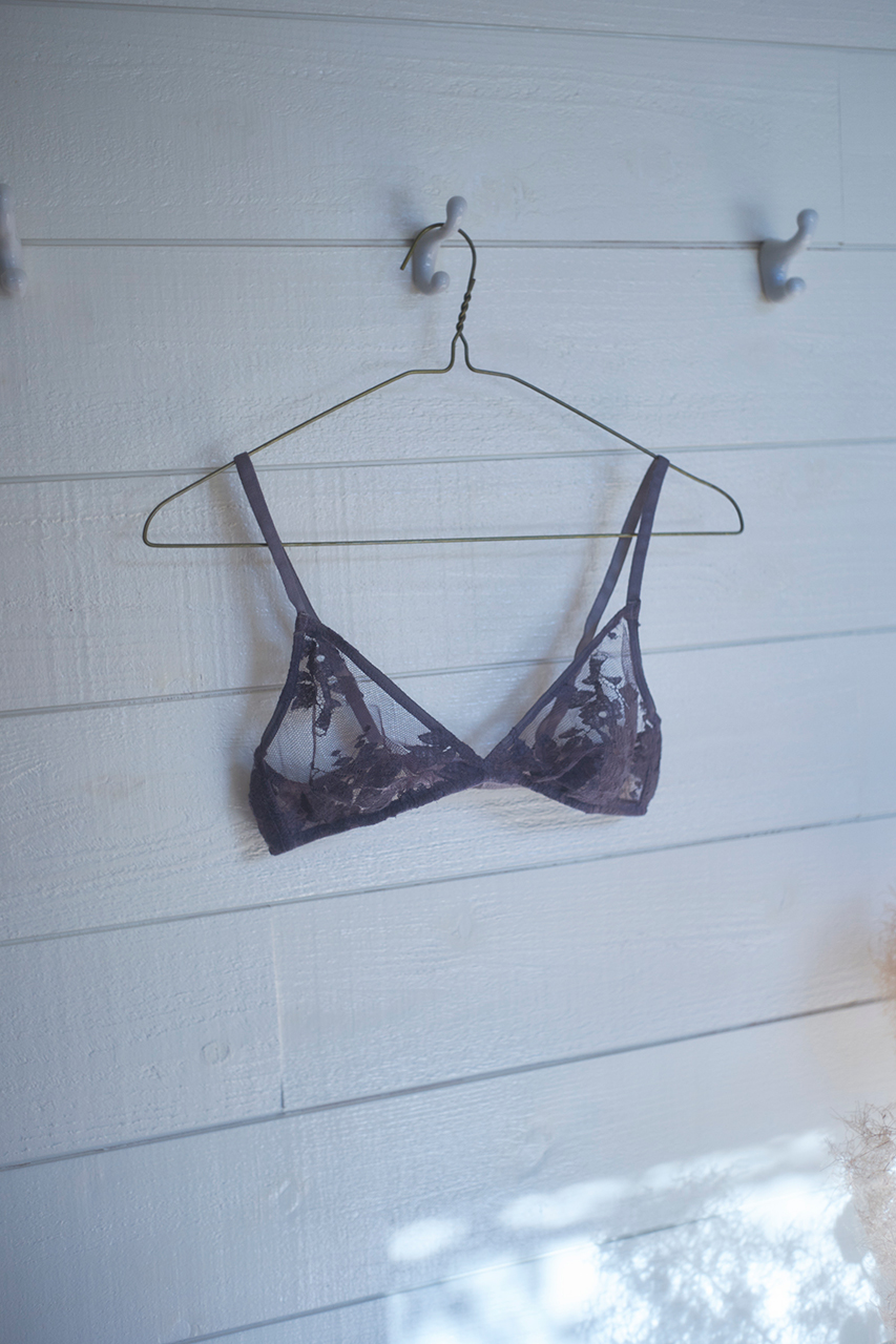 過去のコレクションで使用したフレンチリネン混の残レースを使用したブラも加えたラインナップ。