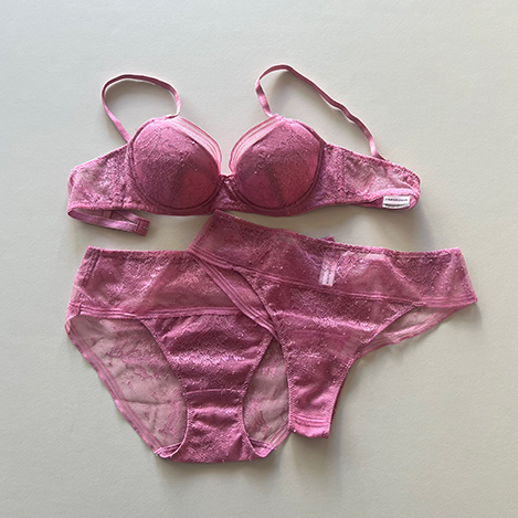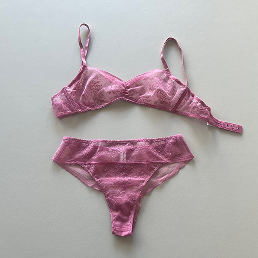 ブルーベルの花を描いたオリジナルのストレッチレースが映える大人のためのランジェリー。