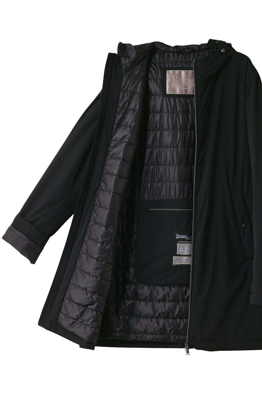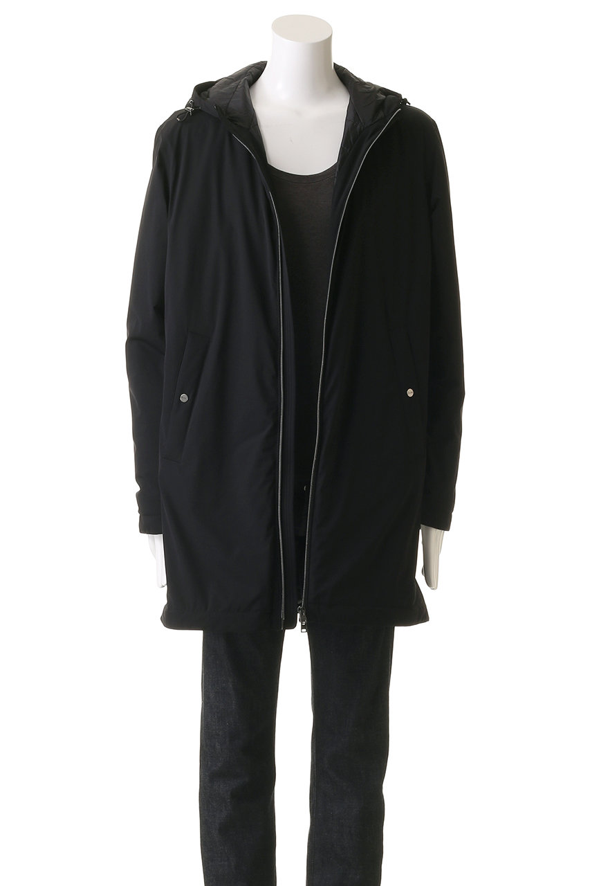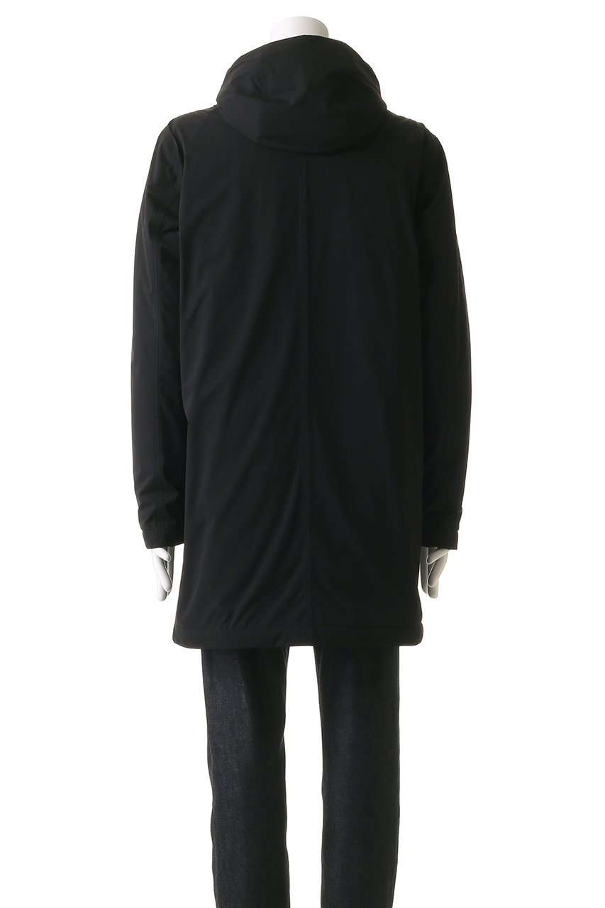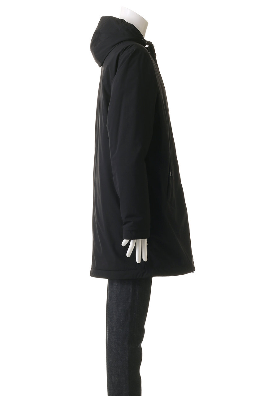 スイッチシーズンや秋先の即戦力にふさわしいフーディコート。はっ水ナイロン素材の軽量な着心地と急な悪天候でも対応できる機能性が魅力。マットな質感がスポーティすぎず、大人上品な雰囲気をキープしてくれる1着。パッカブル仕様のため、ご旅行先やお出かけの相棒として持ち歩きもできるのが◎。