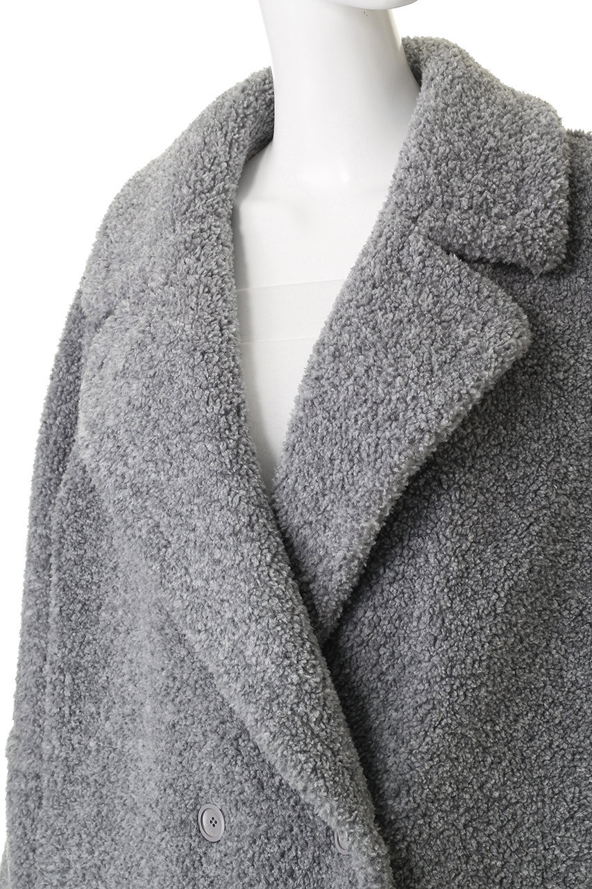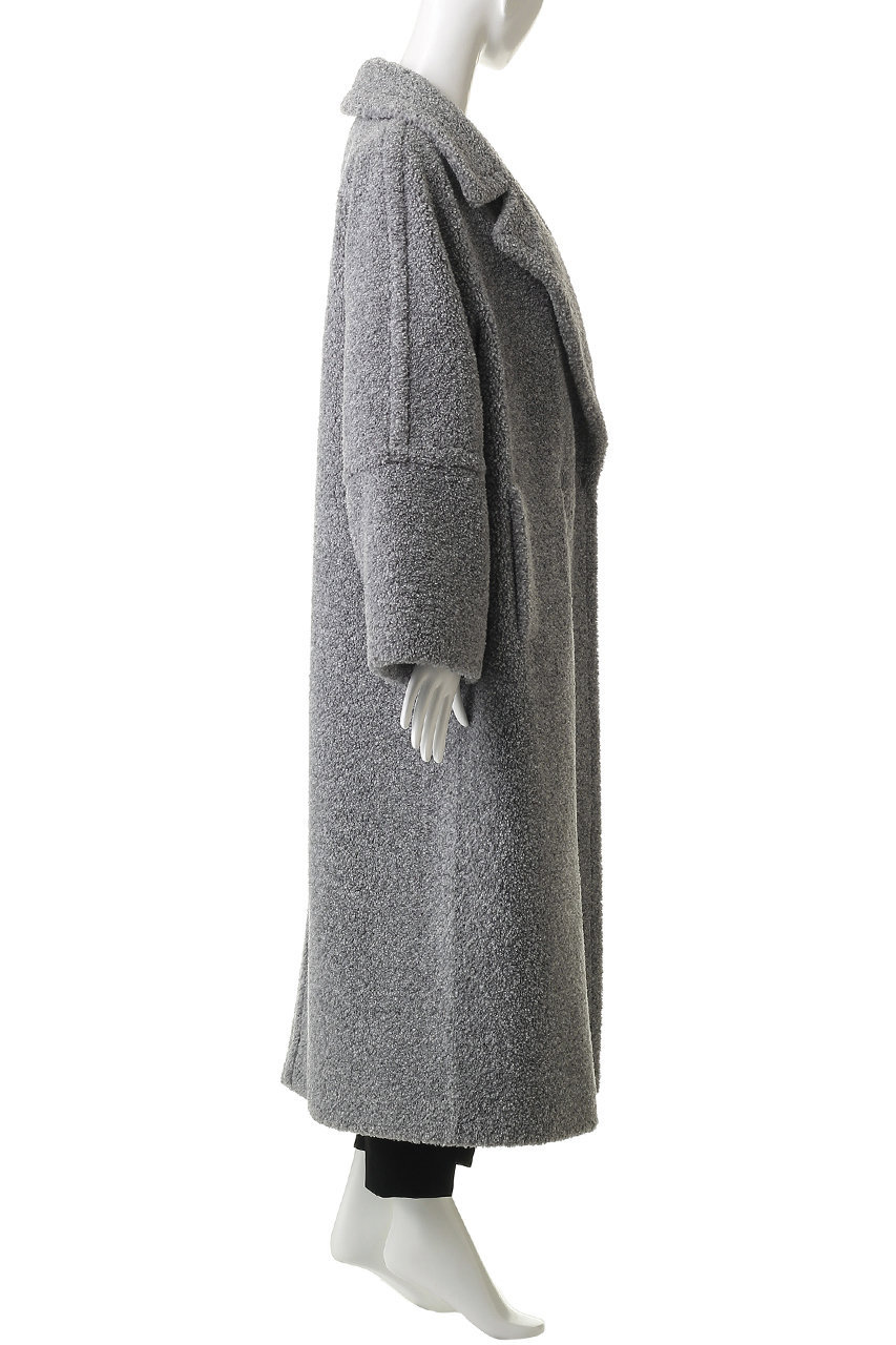 ふんわりとボリュームのあるファーを全面に使用することでインパクトのある表情を演出するマキシ丈コート。ポリエステルのカールボア素材を用いて、カールした毛足は、空気を含むため、軽く、暖かく、柔らかな着心地がボディを包み込んでくれる1着。ベース生地にはジャージを使用して、伸縮性もキープ。ゆるやかな袖の広がりと、ややゆったりとしたシルエットで、羽織るだけで大人エレガンスなルックが実現。