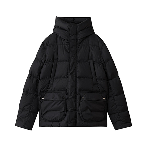 秋冬シーズンに向けて押さえておきたい、ロングスリーブのダウンブルゾン。程よく光沢のあるはっ水性の高いナイロン生地の仕立てと、防風性・保温性に優れた“POLAR-TECH”のフード仕様が高ポイント。ややゆとりのあるシルエットに、メタルボタンと大きめのマチ付きポケットでシックなアクセントを添えた、大人のための上質アイテム。