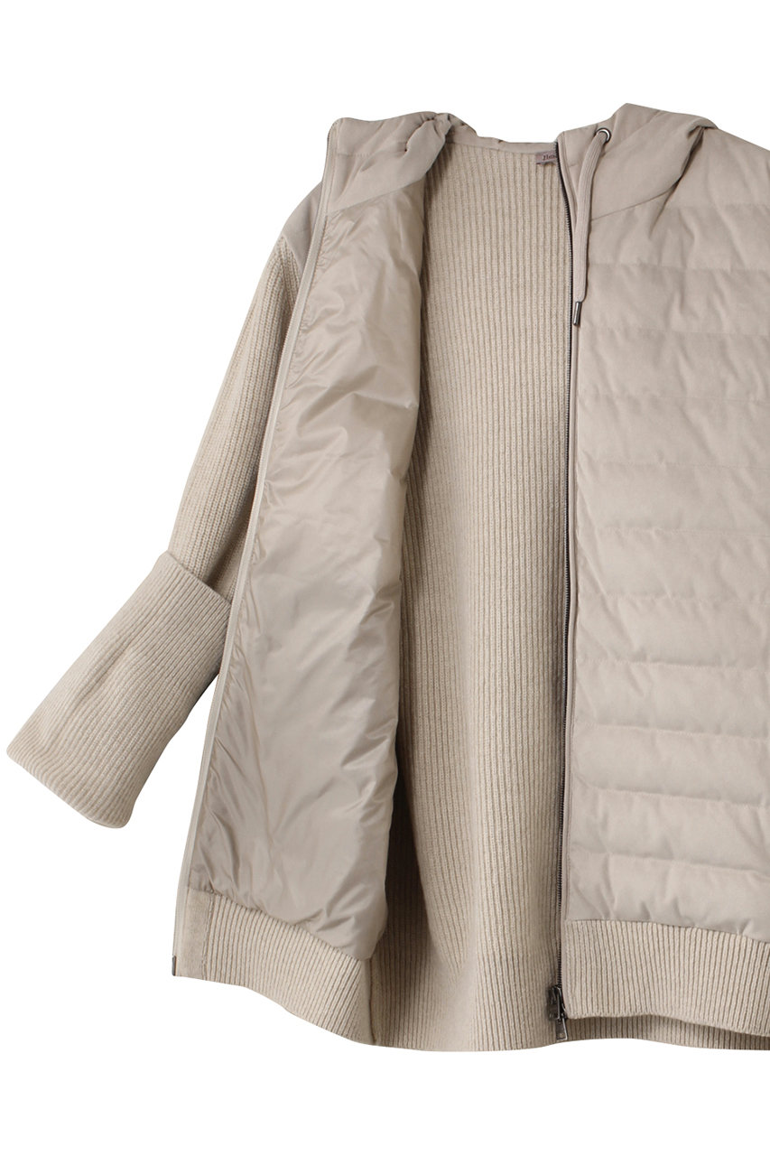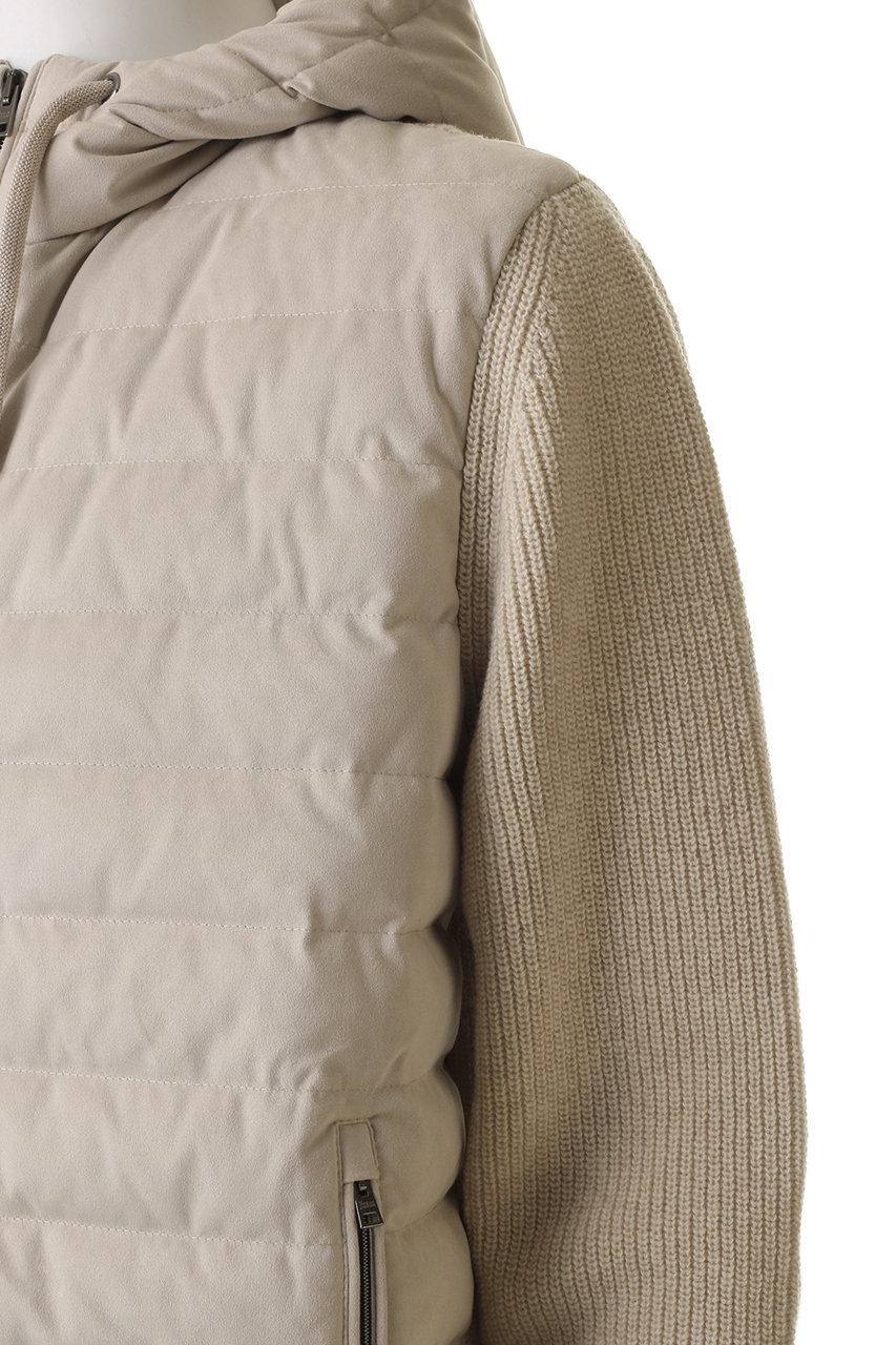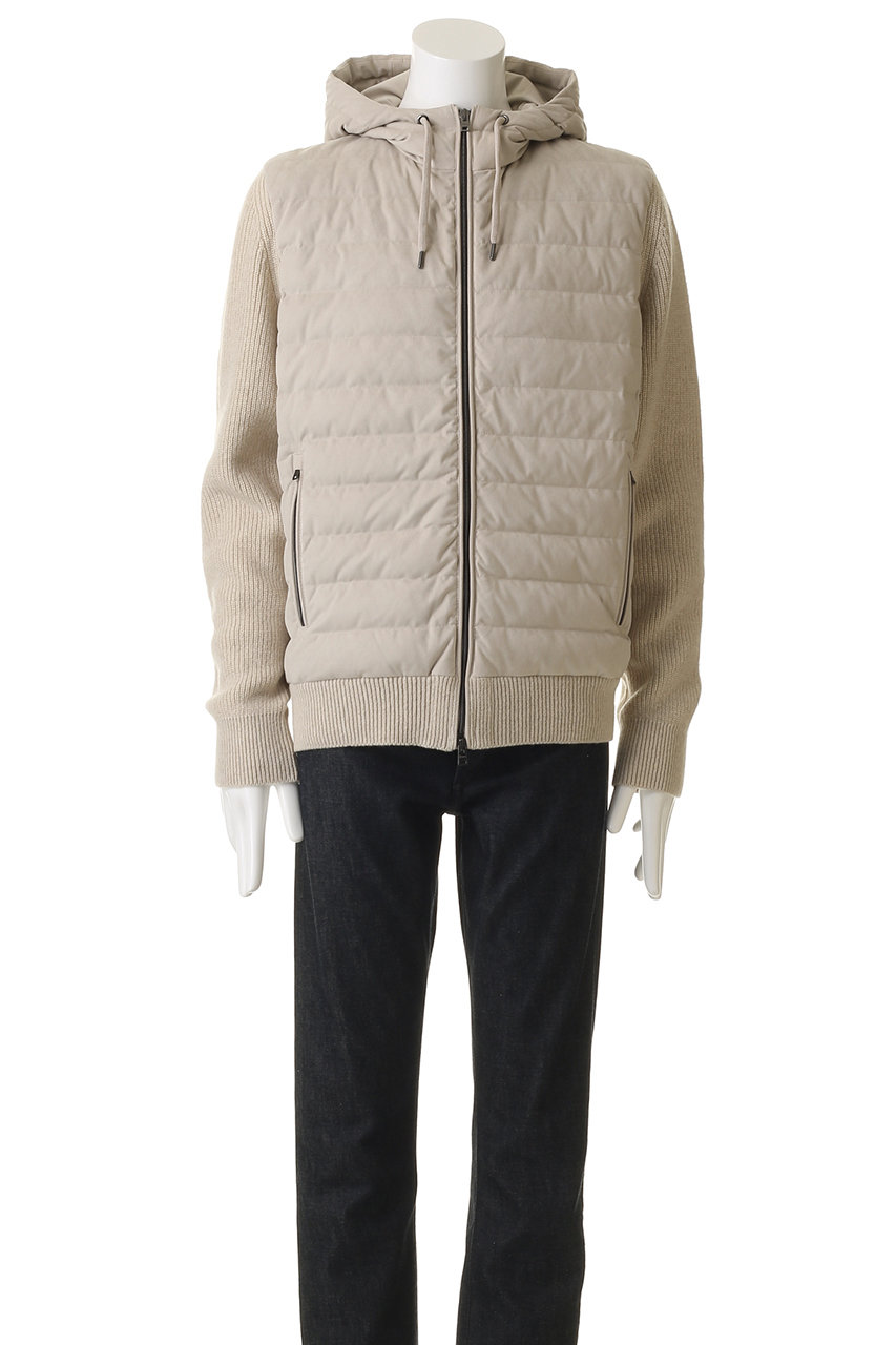 旅をキーワードにラグジュアリー&コンフォタブルに特化したコレクション“HERNO RESORT”から、秋冬シーズンに欠かせないフード付きブルゾンが登場。上品でありながらストレッチ性のあるフェイクスエードと、柔らかなウール素材をリブ編みしたミドルゲージニットとの、シックな異素材コンビデザインが魅力的。幅広いシーンで着まわしたい逸品。
