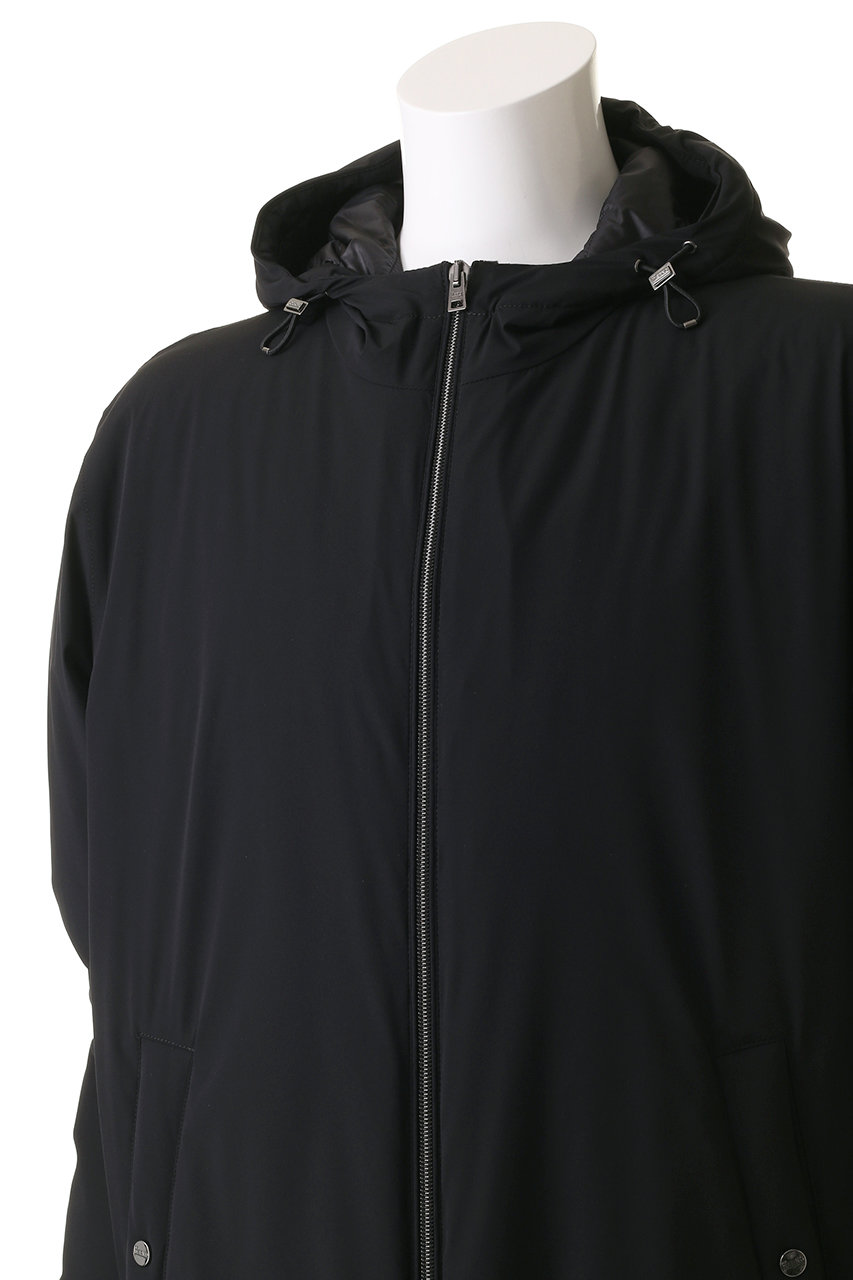 柔らかな着心地と圧倒的な軽さが魅力的な「ヘルノ」定番のはっ水ナイロン生地で仕立てた、ロングスリーブのフード付きダウンブルゾン。すっきりとしたシルエットで、秋口からお使いいただけるだけでなく、冬本番はインナー使いとしても着まわせる優れもの。左ポケットに収納可能なパッカブル仕様で、タウンユースはもちろん、旅行やアウトドアシーンのお供としても◎。