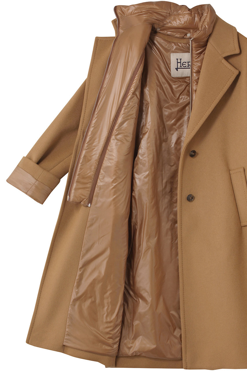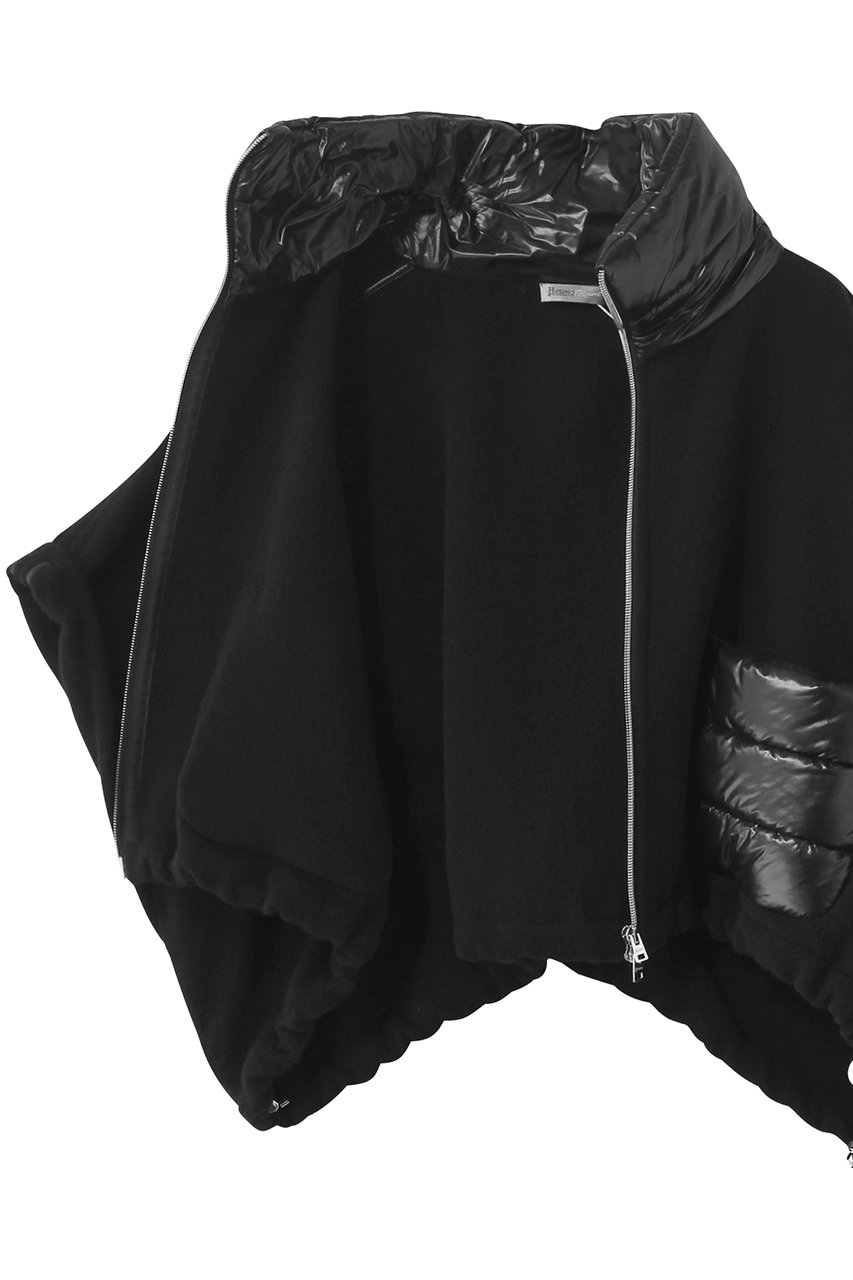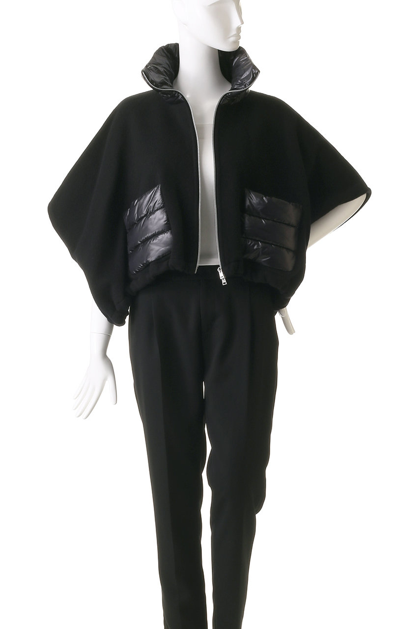 旅”をキーワードにラグジュアリー&コンフォタブルに特化したライン""HERNORESORT""。日常使いできるリラックス感があり、軽量で柔らかな肌触りが手に入るショートポンチョモデルが登場。カジュアルになりがちなナイロンコンビのケープも上質な素材を使用することで、品のある表情にアップデート。起毛加工を施したヴァージンウールにカシミヤを混紡したファブリックは、ならではの柔らかな肌触りが自慢。20デニールの超極細糸で織られた撥水ナイロンで、圧倒的な軽さや上品な光沢でクラス感も味わえる。