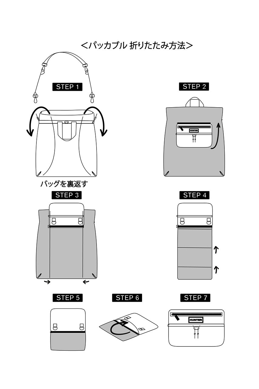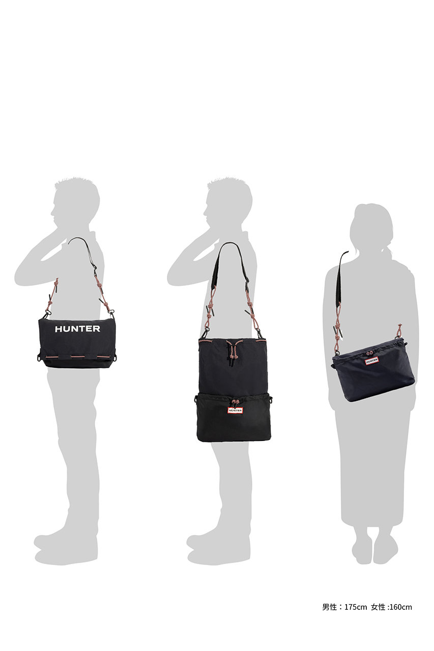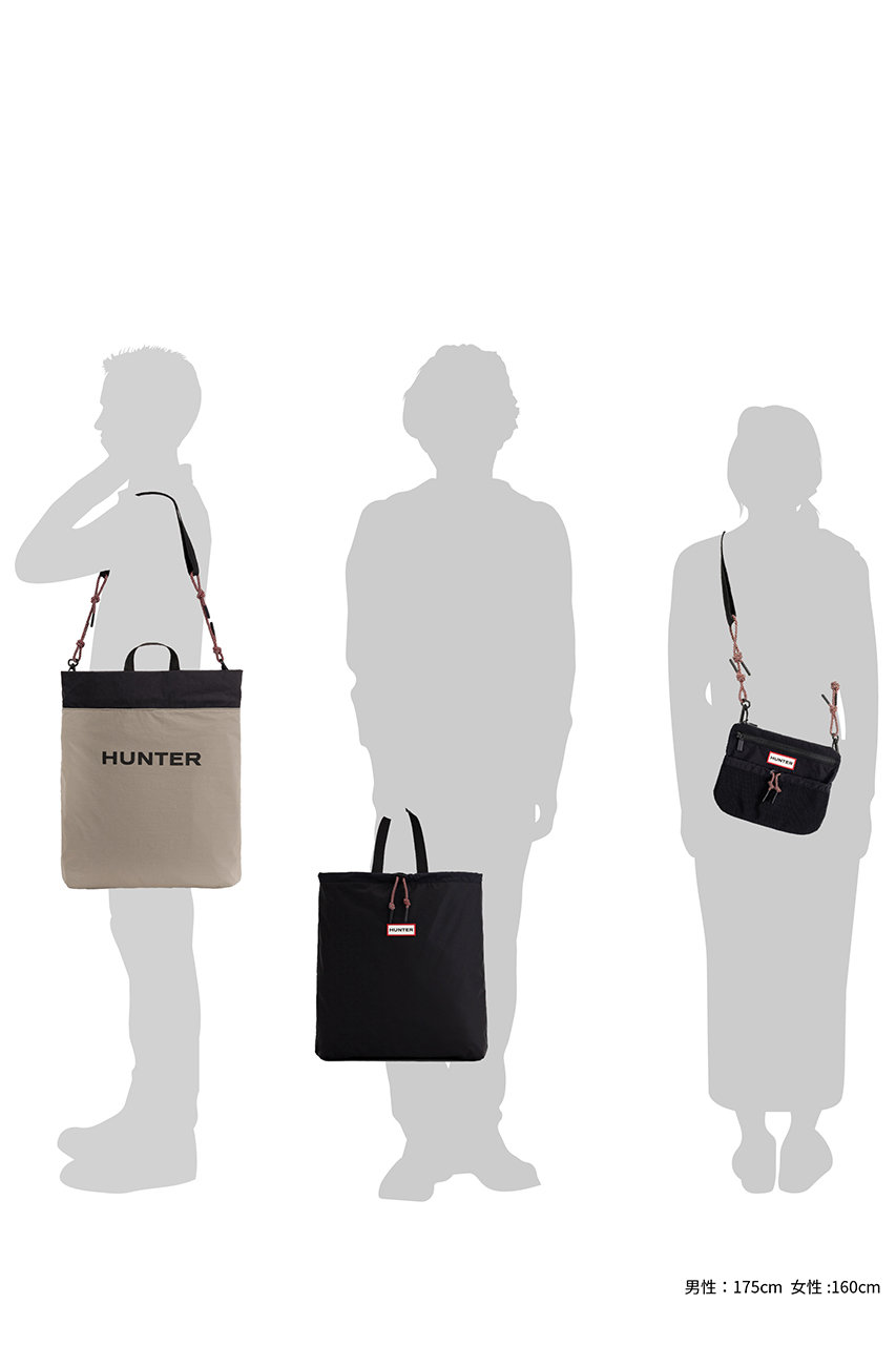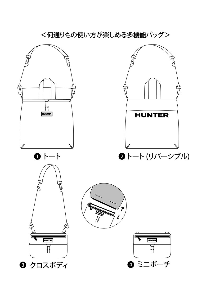 ②プリント「ハンター」ロゴを表に出す2パターン。メインコンパートメントには小物収納に便利な内ポケット付き。