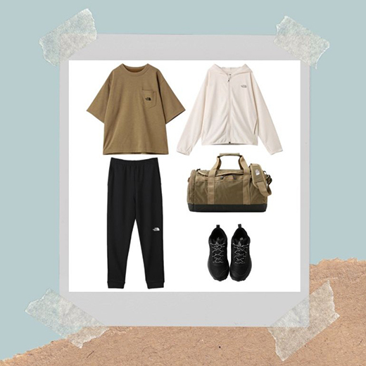 ナチュラルなカーキとクリーンなホワイト、ブラックを組み合わせたシンプルながらスタイリッシュなアクティブコーデ。ゆったりシルエットのトップスと動きやすいジョガーパンツで、合宿やアウトドアシーンにもぴったりの着心地を実現。全体カラーのトーンを揃えることで、統一感のある仕上がりに。機能性とデザインを両立させた、毎日のアクティブライフに寄り添うコーディネートです。