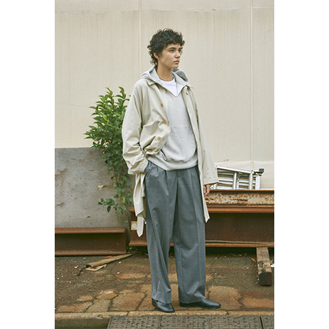 急な天候の変化にもしなやかに対応する、ストレッチ性に優れたマットな風合いのレインジャケット。レインウェアにしては珍しく、ストレッチ性を備えています。メッシュ素材を使用したポケットは、衣服内が蒸れた際に通気性を高めるベンチレーションとしても機能します。肌面にドライタッチ加工を施した2.5層の生地により、汗によるべたつきを軽減。小型バックパックやボディバッグの上からも着用可能なゆとりのあるシルエットは、裾のドローコードによって好みに調節可能。UVガード機能も付き、梅雨や突然の雨にもスタイリッシュに対応します。