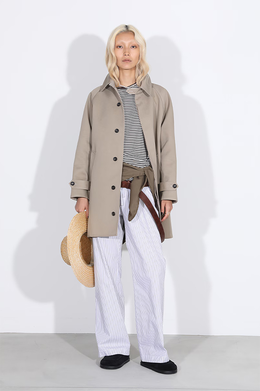 ブランド初期のステンカラーコートをベースに、現代的に再構築したバルカラーコート。