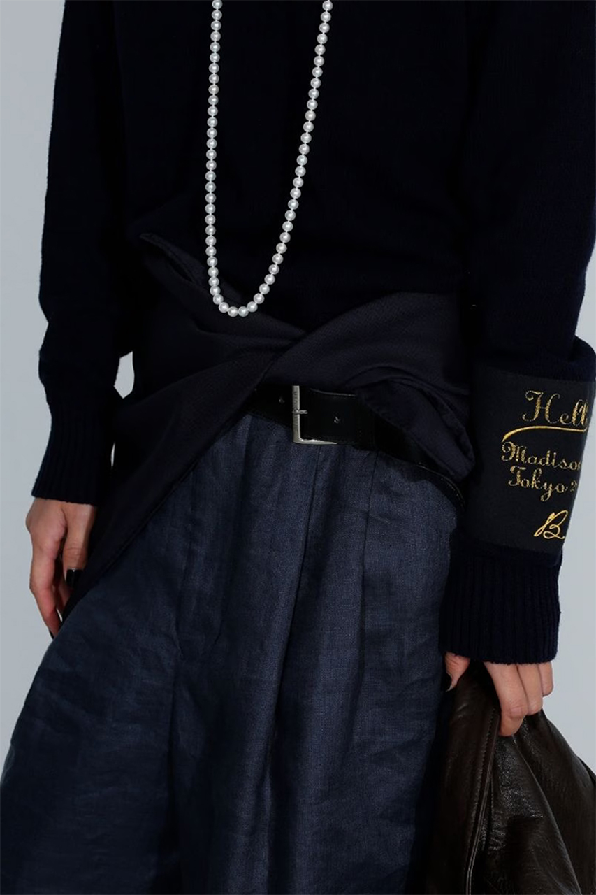 伝統的なガンジーニットを、春夏仕様にアップデート。樹脂加工を施したコットン糸を撚り合わせ、ドライで凹凸のある編み地に仕上げました。軽量ながら安心感のある着心地で、気温差のある季節にも活躍。袖の“Hello”ワッペンが、さりげない遊び心を添えます。