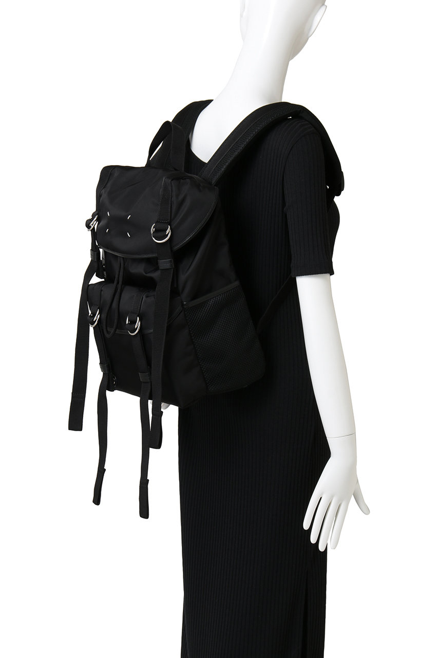 一見カジュアルなバックパックを「メゾン マルジェラ」がモードな顔立ちにブラッシュアップ。タフなテクニカル素材を使用し、小物の整理ができる内外ポケット付きで、アクティブな場面にも使える実用性をキープ。フロントはアイコニックな4ステッチとエッジィなストラップがアクセントをプラス。タウンから、ビジネス、小旅行まで、あらゆるシーンで活躍すること間違いなし。