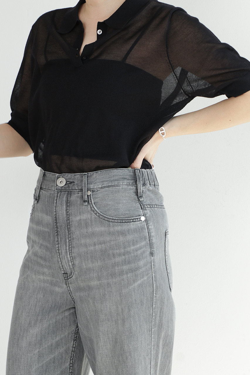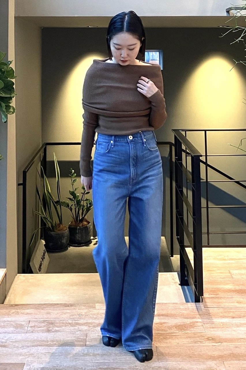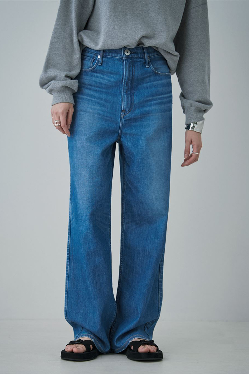 全体的にゆるっとしたシルエットでミドルライズの微フレアデニム。素材はリヨセル混で通常のデニムよりも落ち感があり軽やかで柔らかい「アッパーハイツ」オリジナル素材を採用しています。