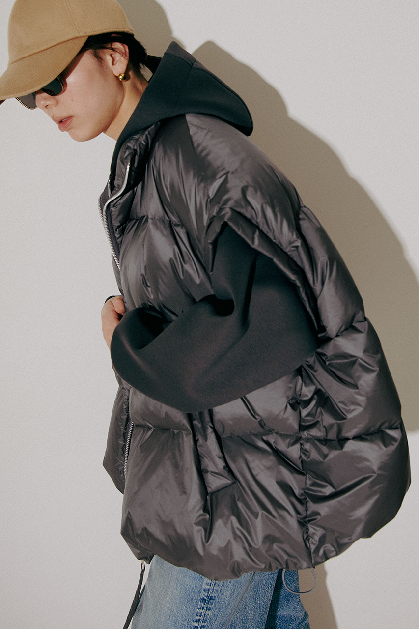 マイクロデニールの超軽量ナイロン素材を使用し、ワイドシルエットでショート丈のデザイン。スピンドルで裾を絞ることもでき、シルエットの調整が可能です。レイヤードな着こなしが楽しめる万能アイテム。