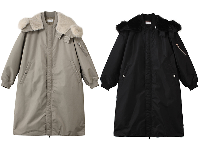 弱撥水加工が施され、汚れにくいナイロン高密度サテンを採用。フードの外回りのエコファーも取り外し可能で、シーンにあわせてアレンジが楽しめます。