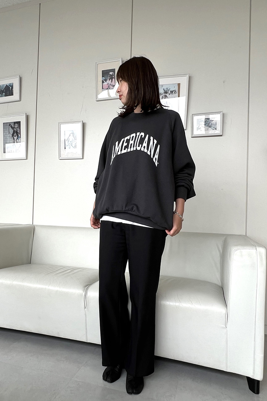 素材には、希少性の高い編み機を使用した裏毛を採用しました。ゆっくりと編み上げ、ふっくらと柔らかな風合いが特徴です。前後差のある着丈は、前は重くなりすぎず、後ろはヒップが隠れるように設計。袖のボリュームもポイントで、一枚で決まるようにデザインしました。スミクロとベージュの 2色で展開しますので、お好きなカラーをリクエストしてください!(Americana デザイナー)
