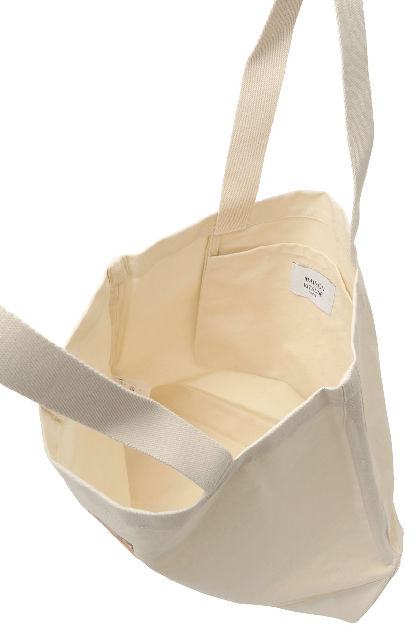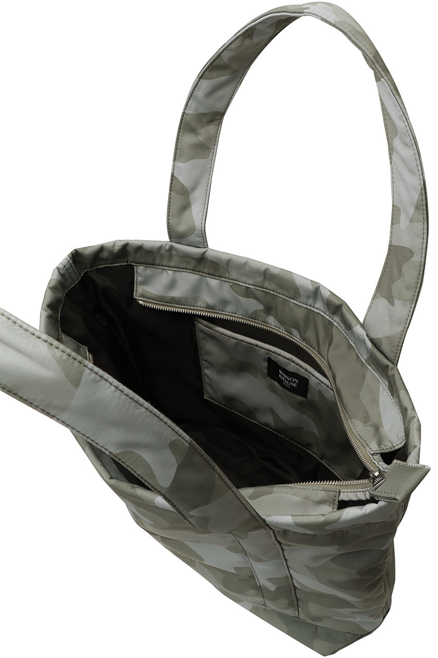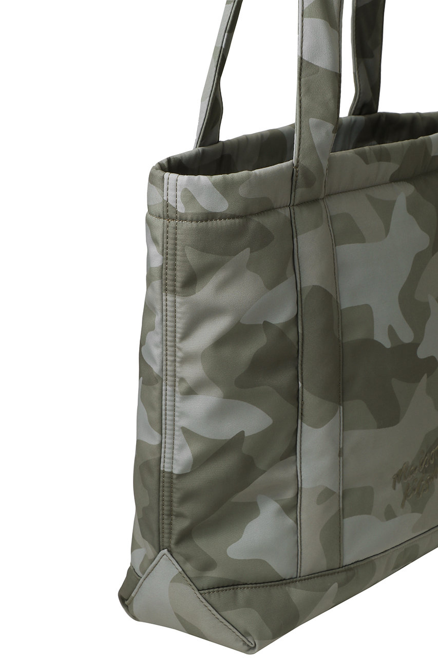 「メゾン キツネ」ならではのフォックスモチーフをスタイリッシュに取り入れた、トートバッグがお目見え。大人の装いにマッチする、シックなカモフラ柄が◎。クッション性のある中わた素材や使い勝手の良いマチ付きのスクエアフォルム、間口のファスナー仕様など、実用性の高さも嬉しいポイント。