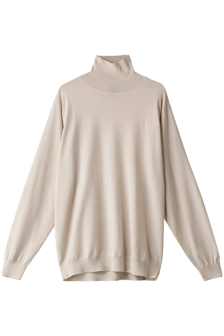 今すぐ着たいなら肌着にも採用されるほどやわらかなスーパーファインメリノウールのハイゲージニットがおすすめ。しっかりと度目を詰めて編み立てているので一枚着でもちくちくしないのが◎。シンプルだからこそ、仕立ての良さが光ります。