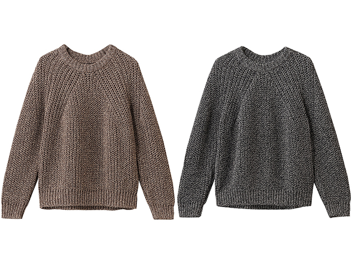 ローゲージによる迫力のある表情と軽さ、カラーミックスによる深みのある色味が心惹かれるクルーネック。太番手のコットン糸を天然樹脂でコーティングし、フラットなテープ状に仕立てた糸を撚糸で色をミックスして編み立て、快適な着心地が実現。シンプルだから、テイストやスタイルを超えて愛用いただける1品。