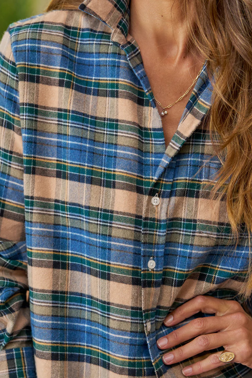 カリフォルニアらしいのリラクシーなシルエットの“EILEEN”は、どんな体型にも美しくフィットする「フランク&アイリーン」のベストセラー。チェック柄で季節感を取り入れながら、軽やかさと秋のムードを両立できる一枚です。丸みのある肩のラインとヒップまで隠れるシャツテールは、羽織っても、タックインしても決まる万能シルエット。秋が深まってきたら、ニットとのレイヤードもおすすめ。薄手のニットの下にシャツを重ねて襟元を見せたり、ざっくりニットの上から羽織っても◎。