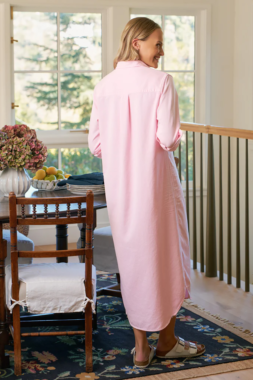まっすぐな縦ラインが美しい、軽やかなロングシャツ“RORY”を淡いピンクでさらにクリーンな印象に。一枚でスタイリングが決まる、季節の変わり目の強い味方です。やさしいピンクはモノトーンが多い冬アウターとの相性も抜群。日差し除けの軽羽織として夏まで大活躍します。