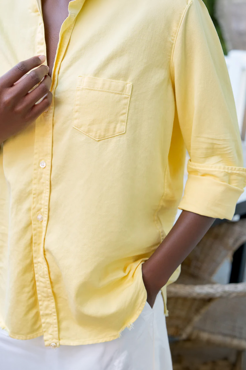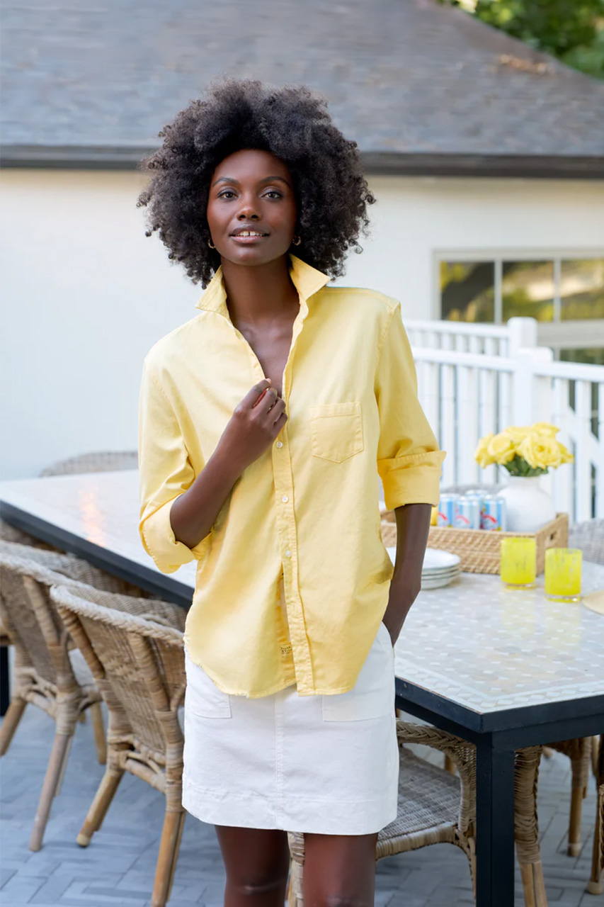 ゆったりとしたシルエットが心地よい、ブランド不動の人気モデル“EILEEN”。やわらかなカラーデニムは、見た目も着心地もとっても軽やか。パッと目を引くイエローはお顔まわりを明るく見せてくれます。洗いざらしのような風合いで、シワを気にせずラフにバッグに忍ばせておけるのも嬉しいポイント。