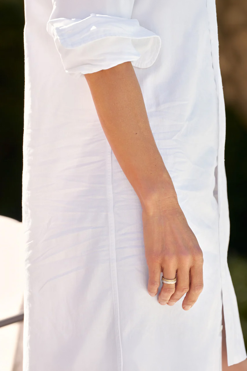 ワンピースとしても活躍するロング丈の“RORY”は、この時期のライトアウターとして優秀すぎる逸品。生地がしなやかなのでロング丈でも重たく見えず、歩くたびに美しく揺れる裾が春らしい軽快さを演出します。Tシャツの上にさらりと重ねるだけで、リラックス感のある大人カジュアルが完成。