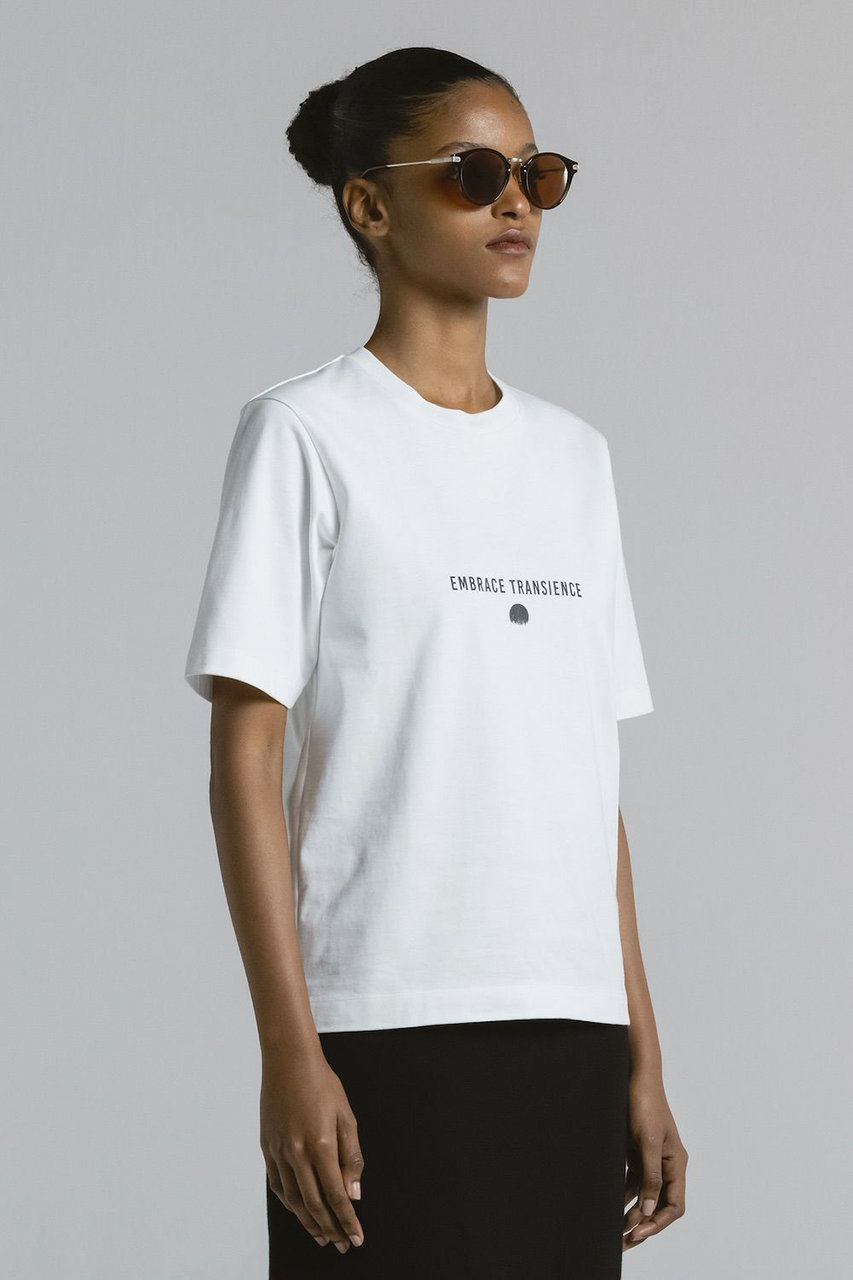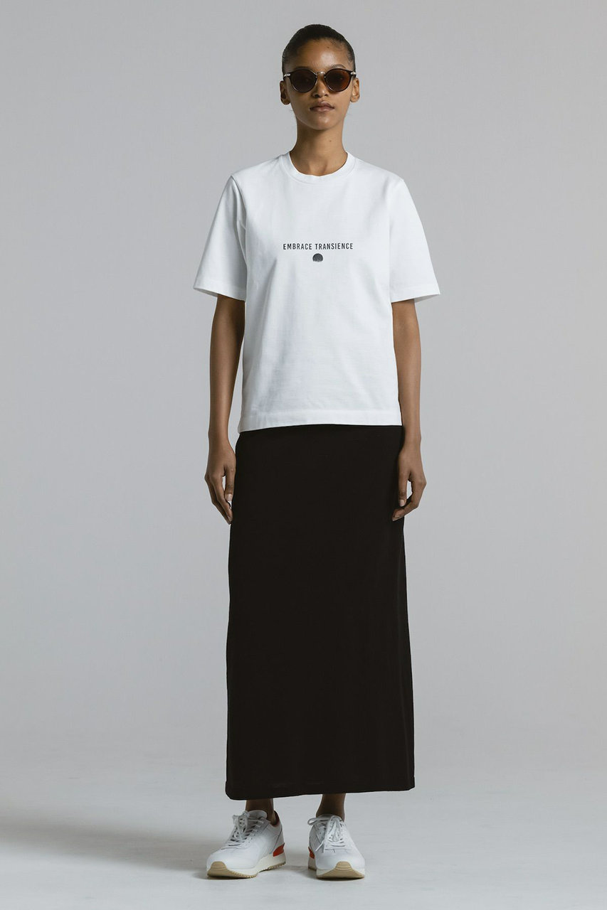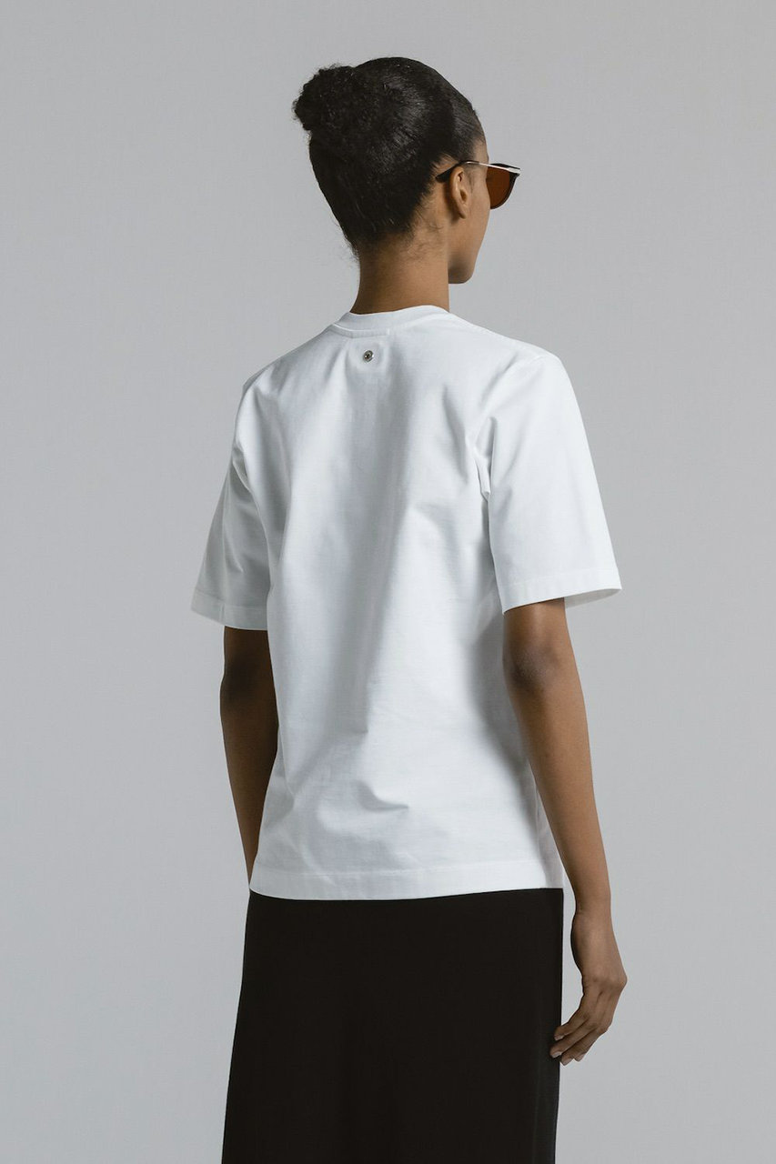 フロントの小さなロゴプリントが、どんなコーデにも程よい抜け感をプラス。さらりと心地よいコットン素材は、デイリーに活躍。程よくコンパクトなシルエットで、ワイドパンツやインスタイルとも好相性。着回し力の高い一着。