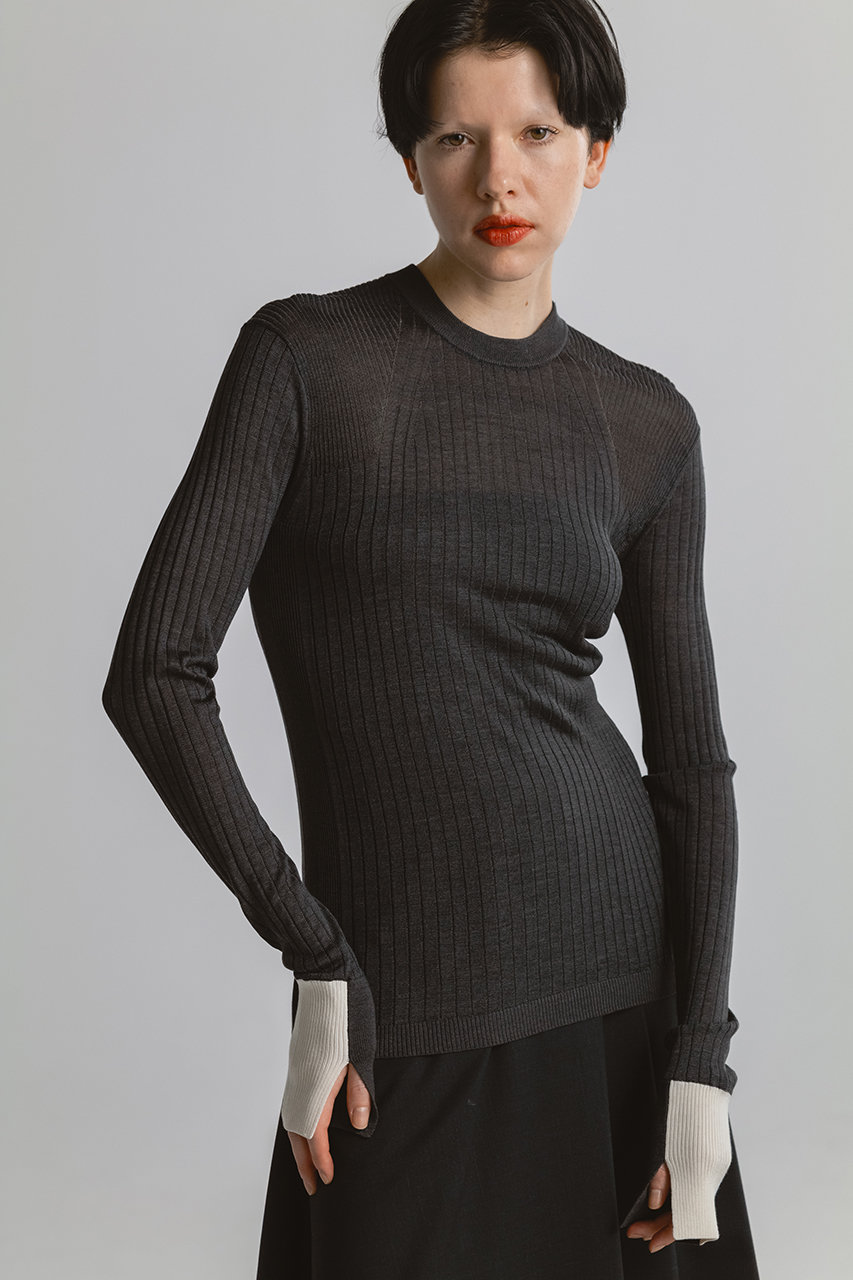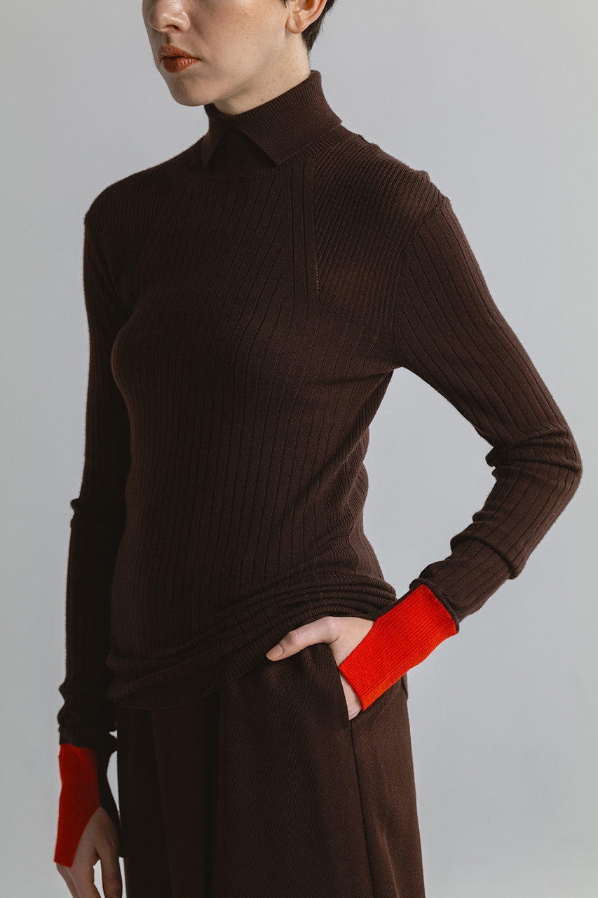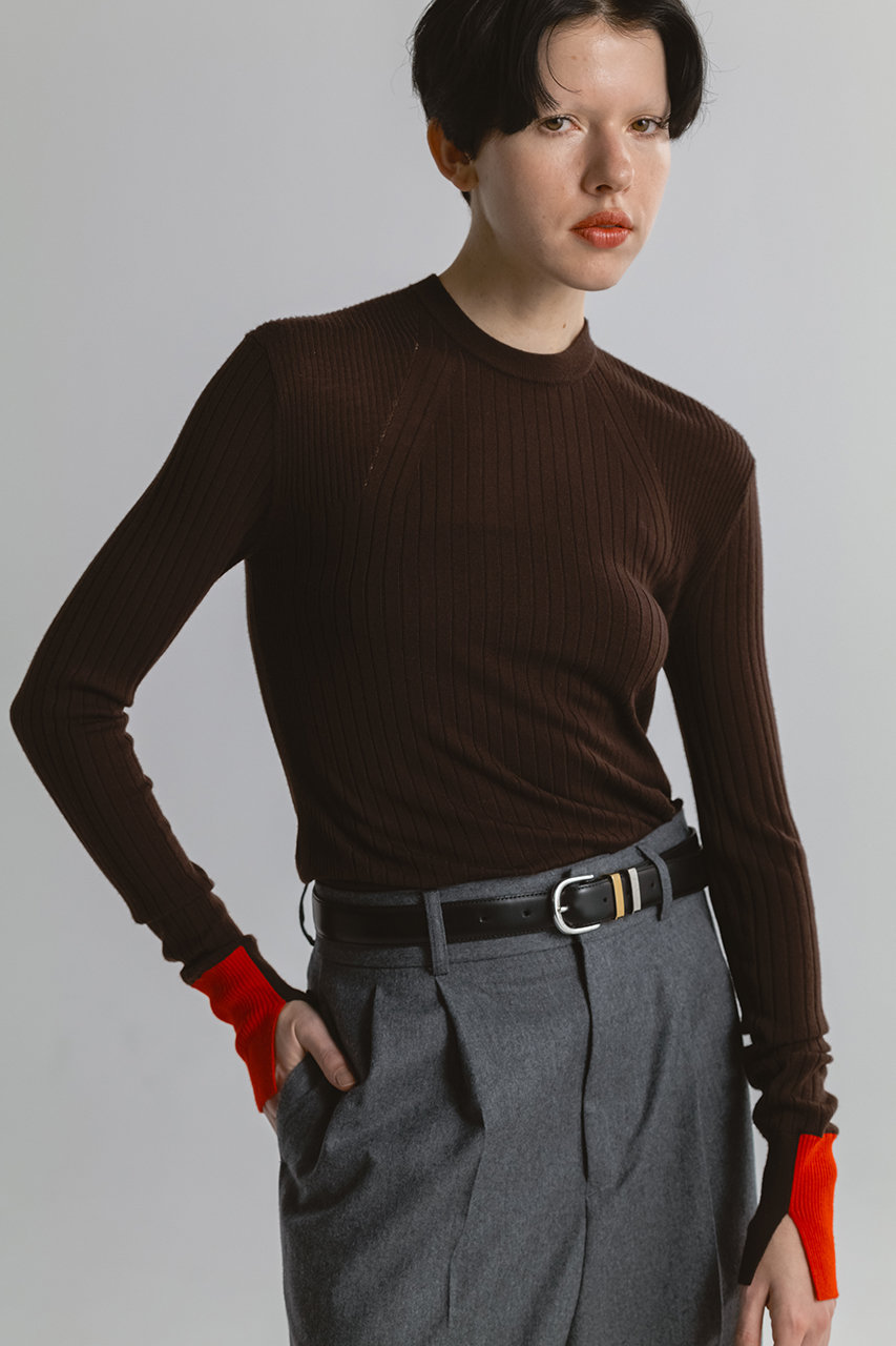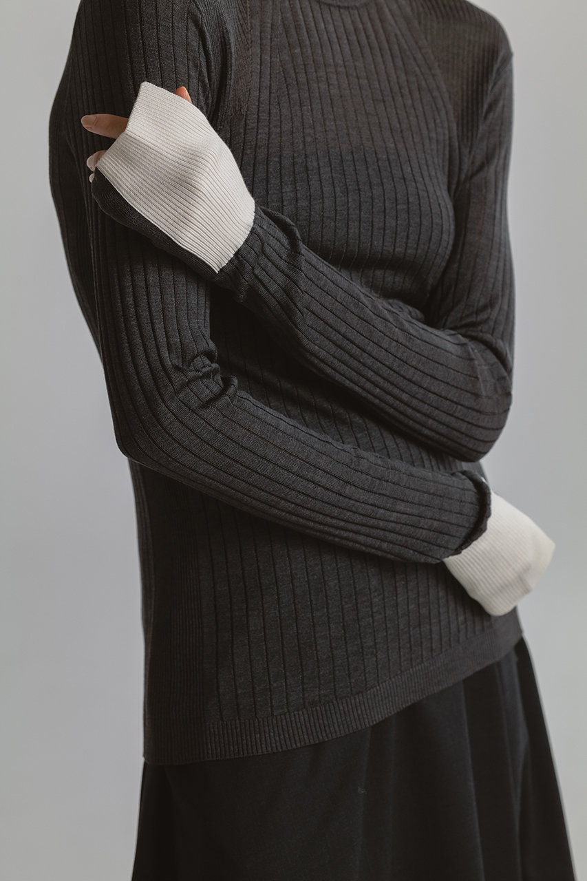 1枚で主役級!「チノ」の袖口バイカラーデザインのニットコレクション。登場して以来高い人気を集め、今季も魅力的な配色、新型が登場!上質なウール混、そしてシルク混の2種類の素材から展開。身体のラインを拾いすぎないほどよいフィット感が大人のワードローブにもぴったり。