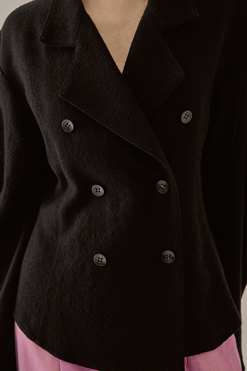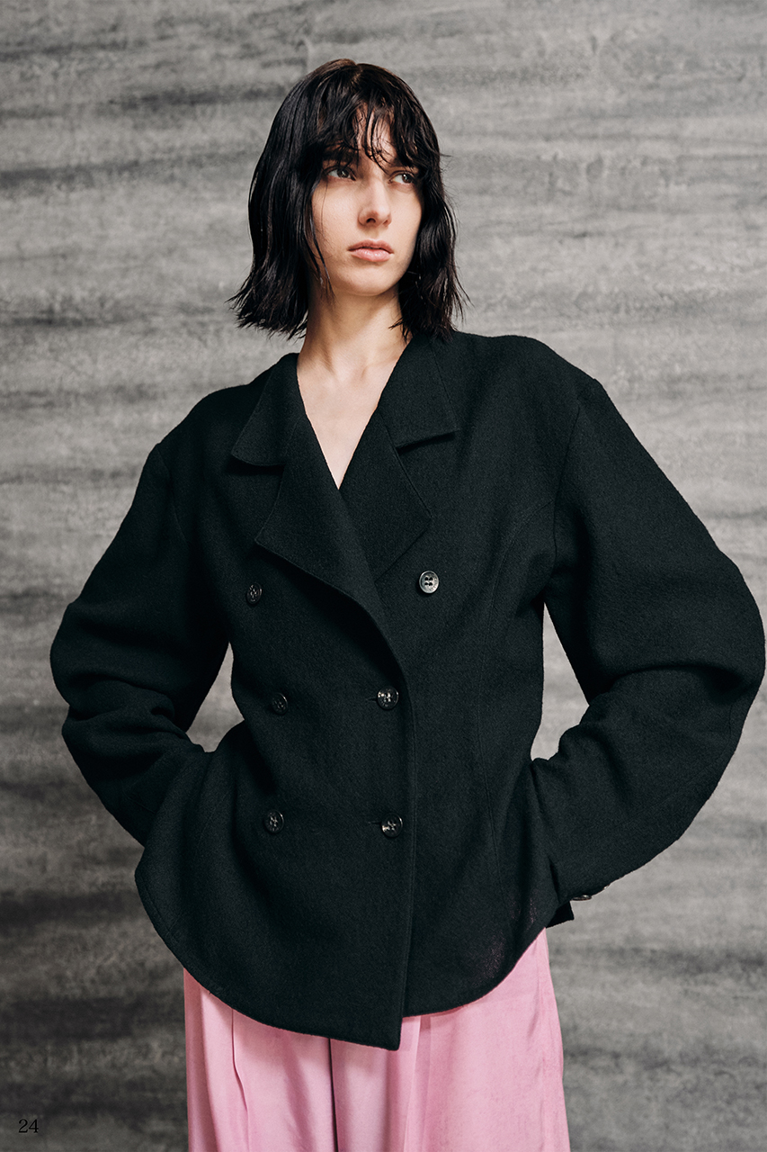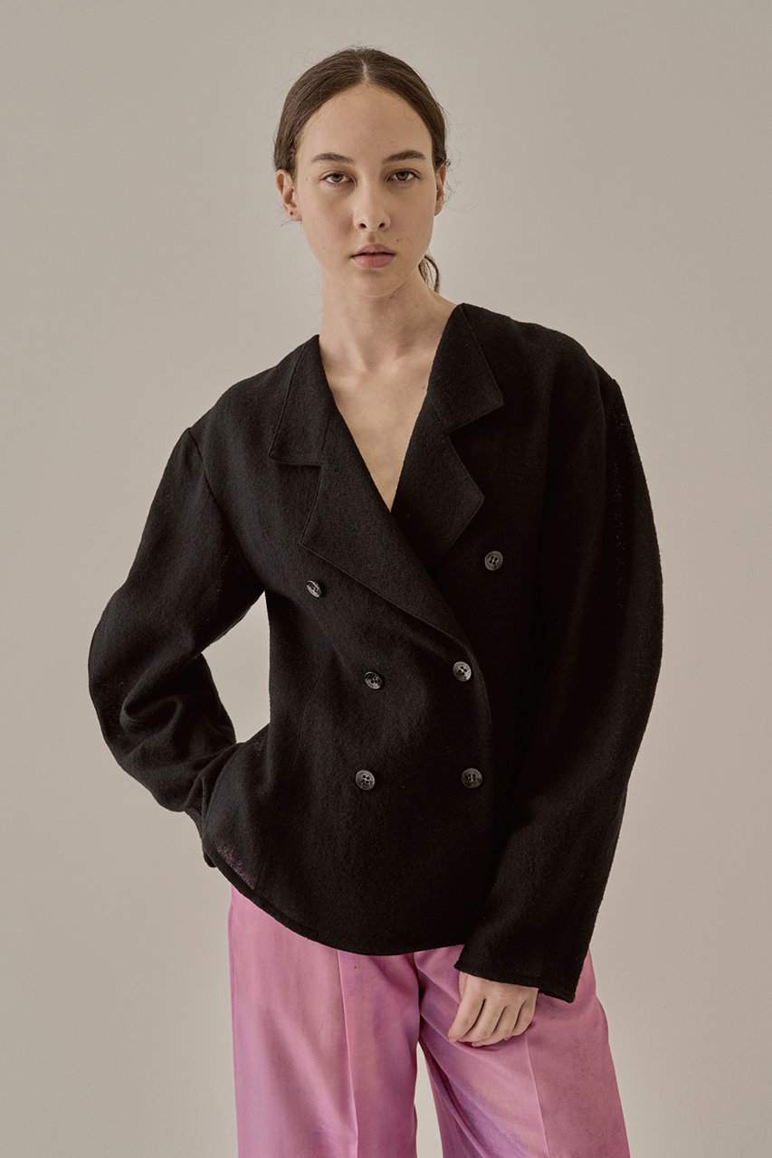 春夏のシーズンムードにマッチするシアー感のあるシャツが仲間入り。ダブルボタンに構築的なシルエットが洗練されたエレガンスな佇まいをキープ。ウール100%のソフトな肌触りが毎日でも愛用したくなる秘訣。合わせるボトムスを選ばず、トップスとしても羽織りとしてもロングシーズン重宝すること間違いなし。
