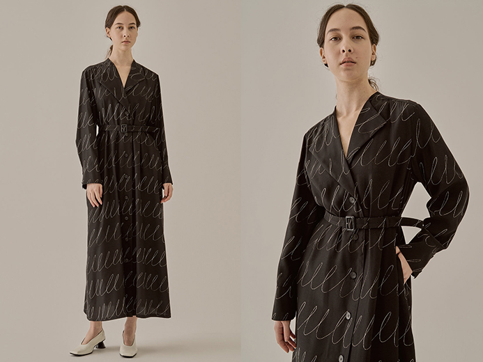 まるで手書きのような繊細なプリントが個性とモード感を奏でるドレス。ゆったりとした優雅なサイジングは、ウエストベルトでメリハリをつけて女性らしく決めてもかっこいい。メインとしても前開きでパンツスタイルに羽織ってもおしゃれ。纏うだけで絵になるから着こなしの主役に選びたい。