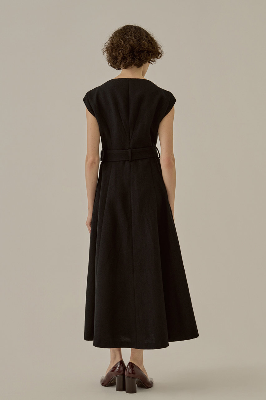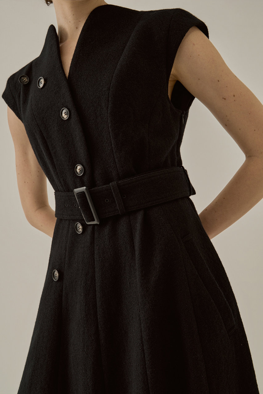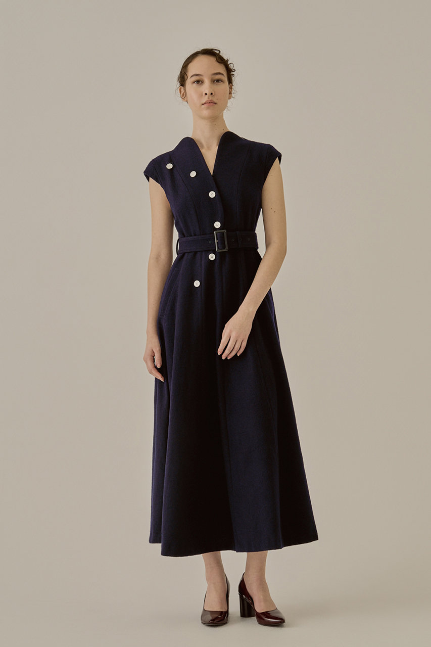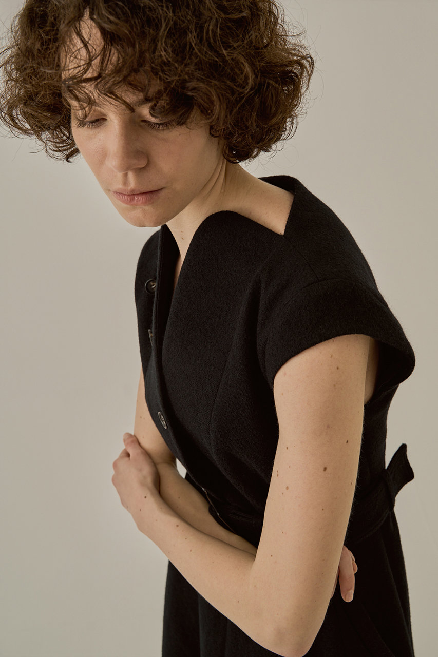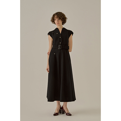 エッジの効いたレディスタイルが叶うドレス。「アキラナカ」の代名詞といえるカーブを描くようなアシンメトリーに配置したボタンディテールとモード感のある構築的なデザインがおしゃれ心を魅了。ウエストベルトが全体を引き締め、1枚で存在感を加速。休日のお出かけやレセプションまで大本命として押さえておきたい。