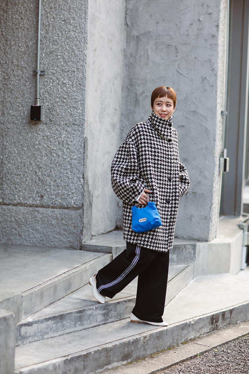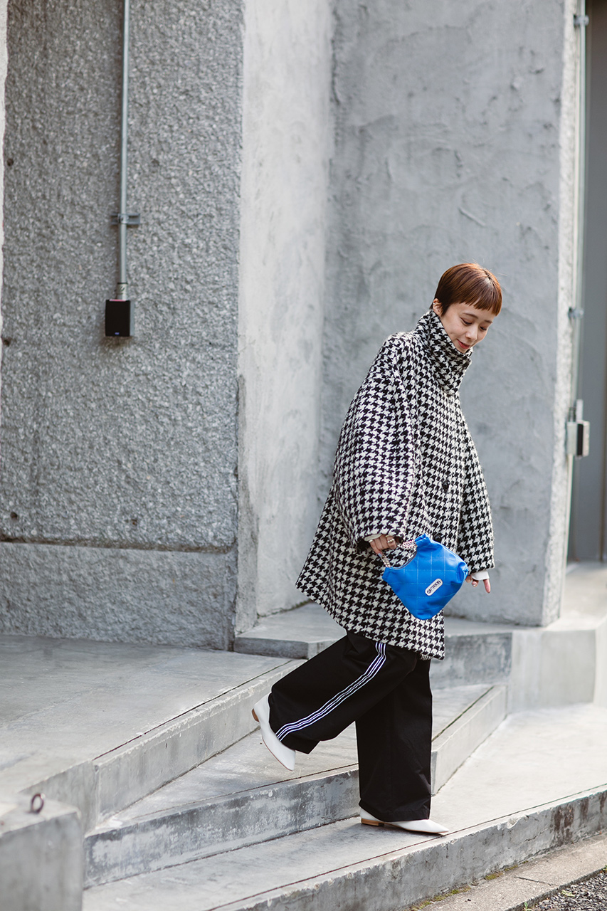 miciならではのシルエットとハウンドトゥース柄がかわいい。モノクロの柄なので挑戦しやすい!