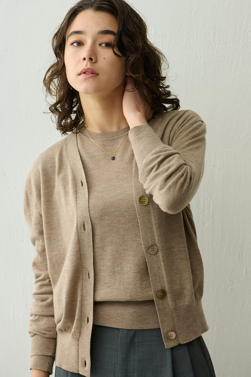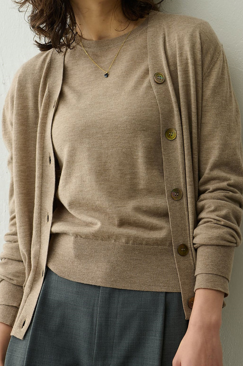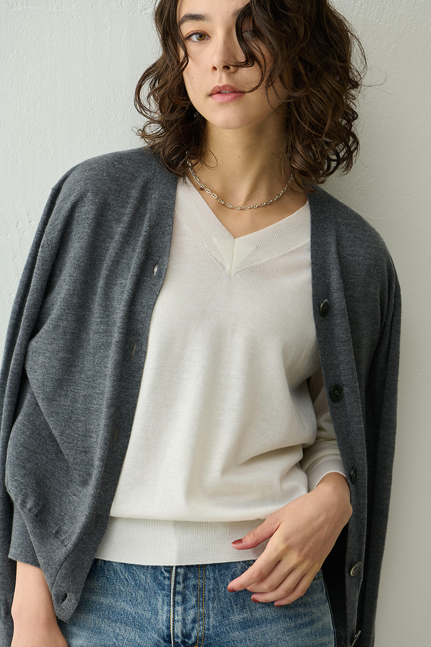 カシミヤのように滑らかな糸を使ったメリノウール。敏感肌の方にもストレスフリーに着ていただけます。上質な品質ゆえ、一年中着られるニットです。