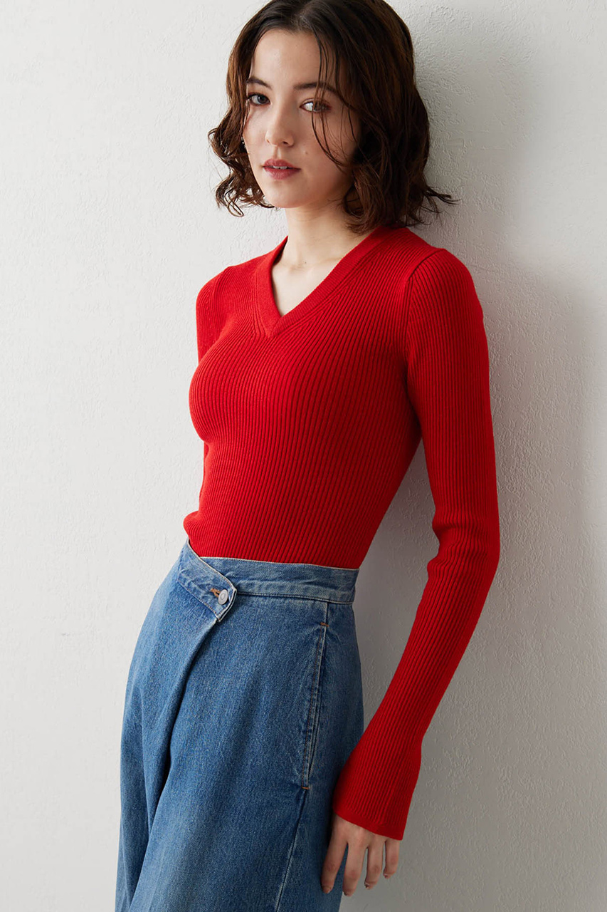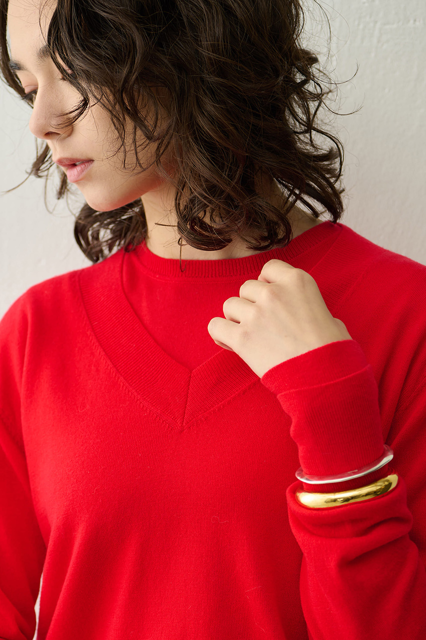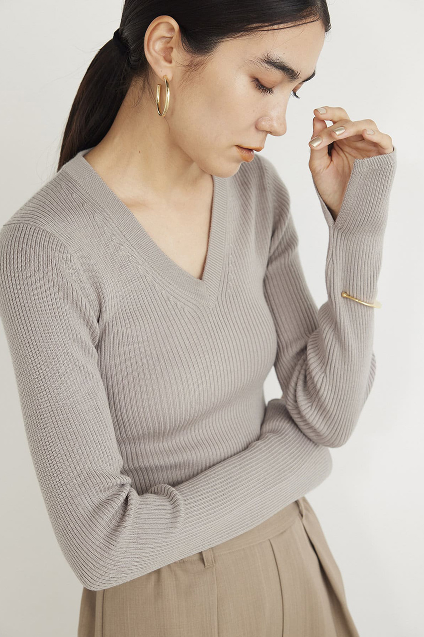 リブVネックプルオーバー
