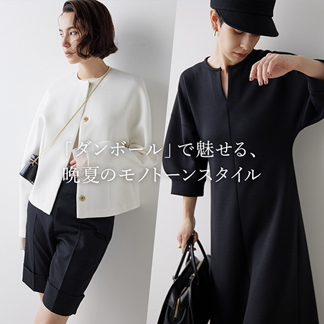 それぞれのカラーを活かした晩夏のモノトーンコーデをお楽しみください。