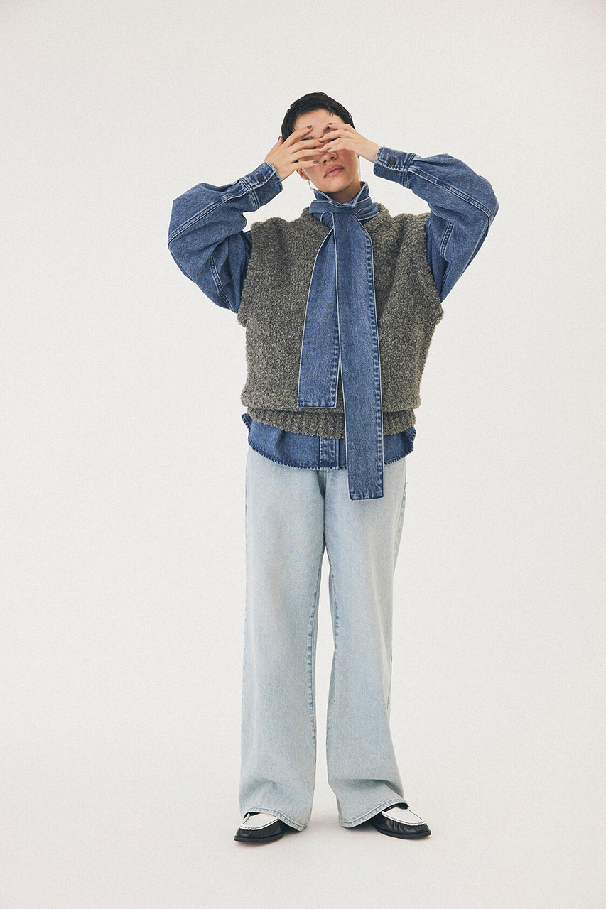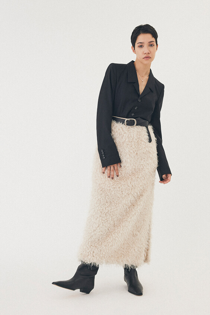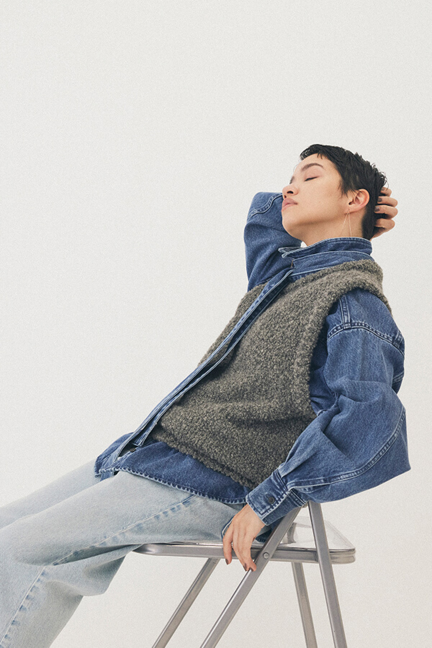 デニムスタイルをブラッシュアップしてくれるフロッキー素材のワンピースやジャケット、トップスを選ばずにコーディネートができるスッキリとしたデザインのサテンスカートなど、スタイリングを引き立てるアイテムが幅広く揃います。