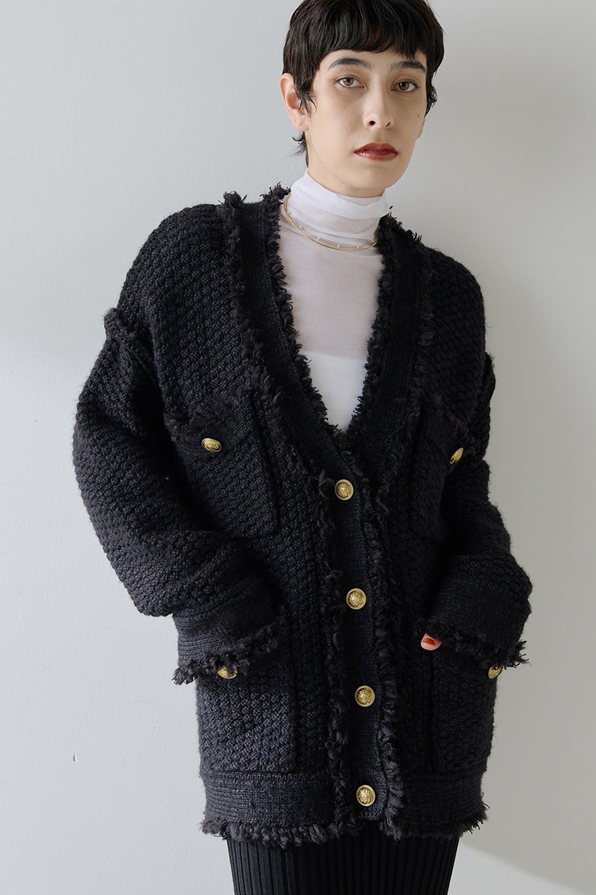 ツイードの気品とニットの優しさを兼ね備えたニットジャケット