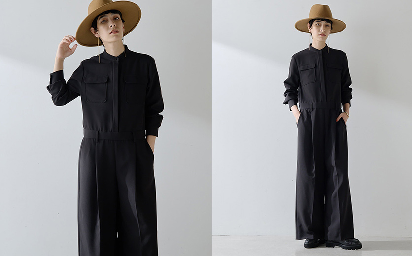 端正な表情と快適な着心地を両立した、マスキュリンなオールインワン