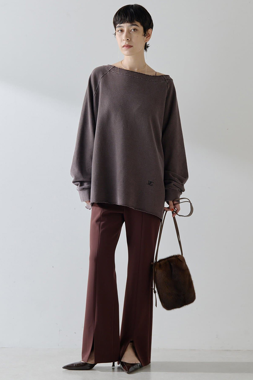 身体のラインを拾わないシルエットながら、ラウンドヘムが足元に抜け感をプラスし重すぎない印象に。