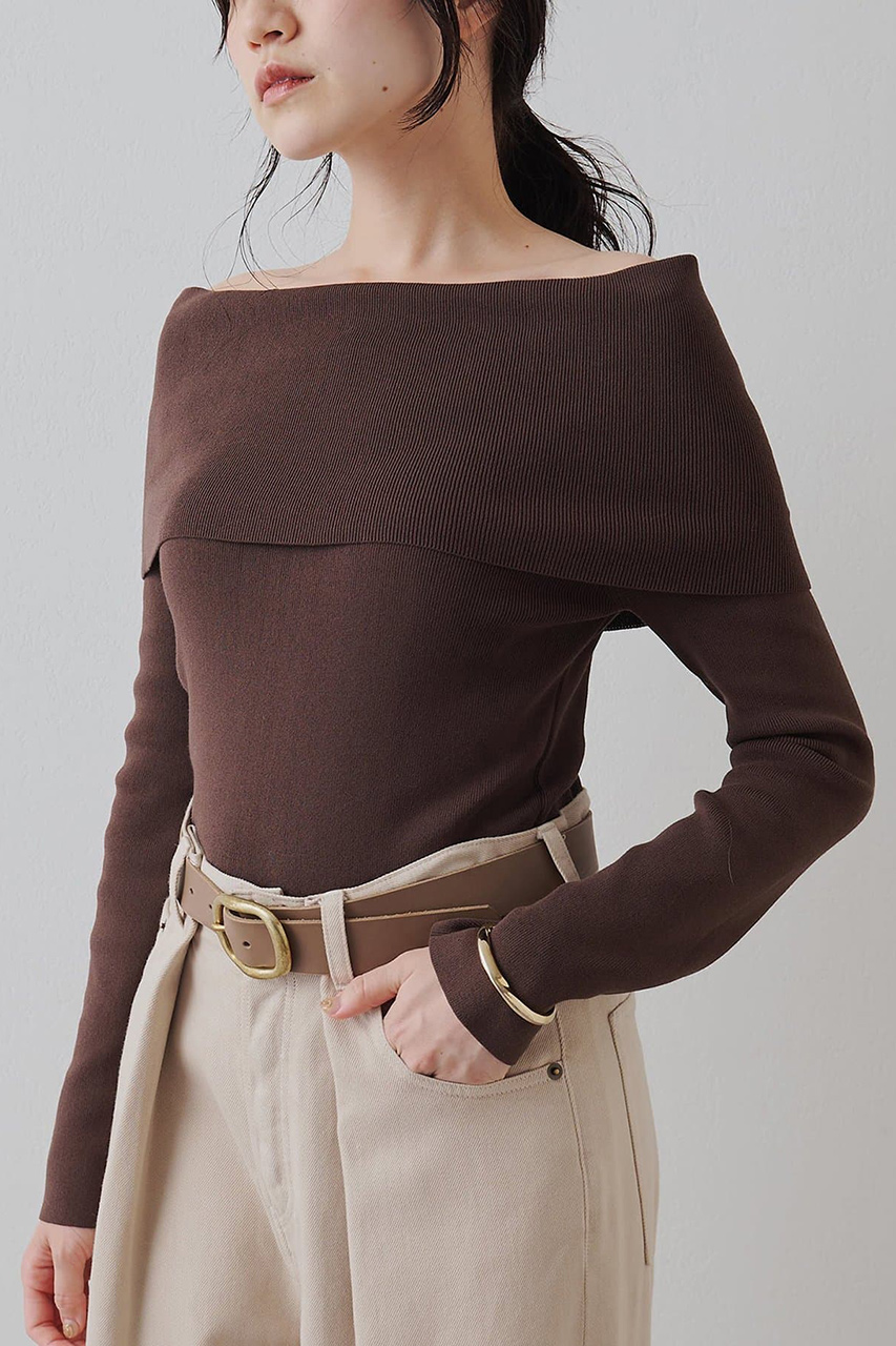 女性らしさと抜け感を演出する、オフショルスタイル。