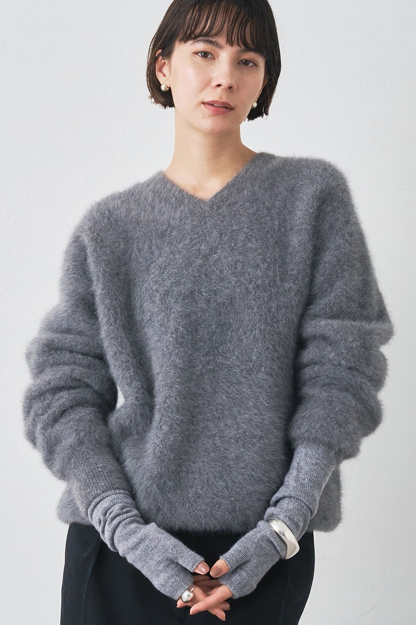 ■一枚で絵になる、リラクシングなVネックファーニット